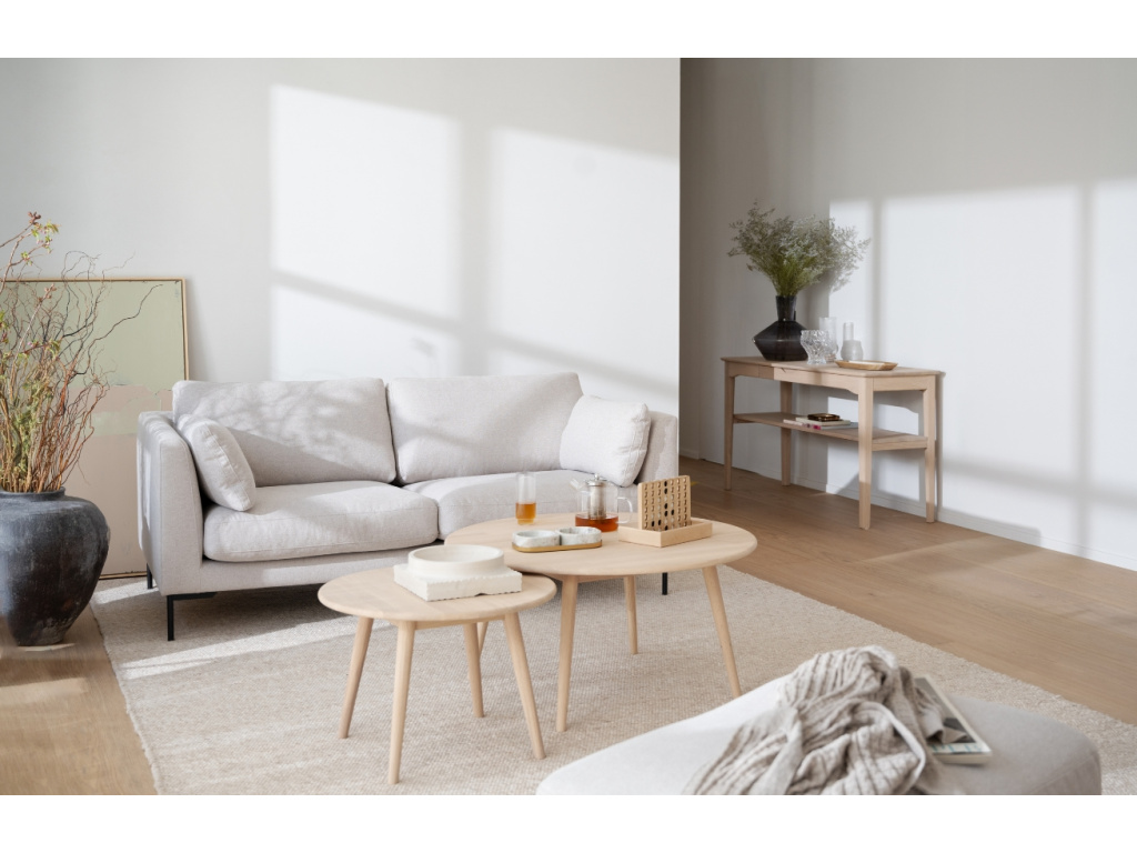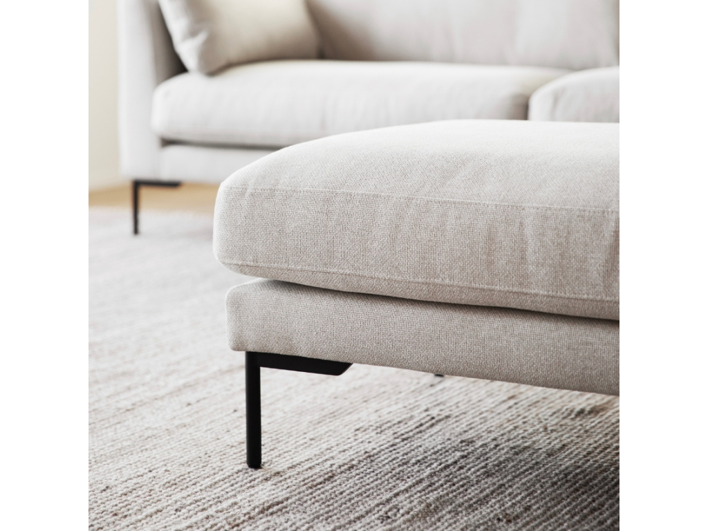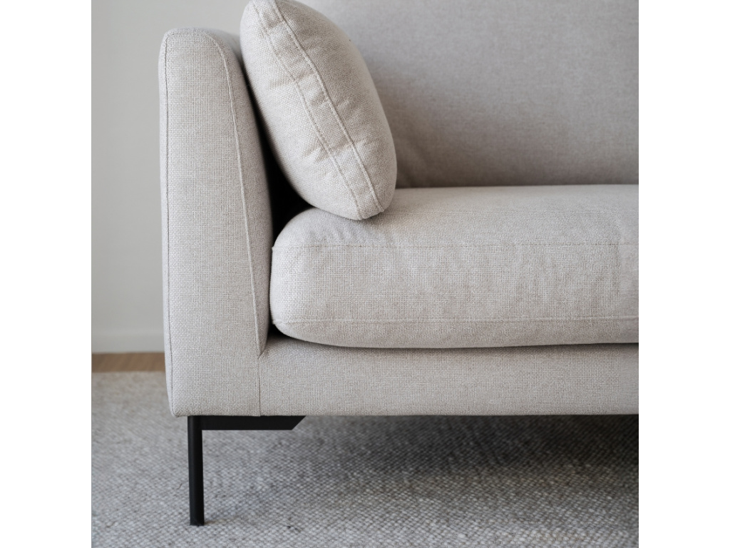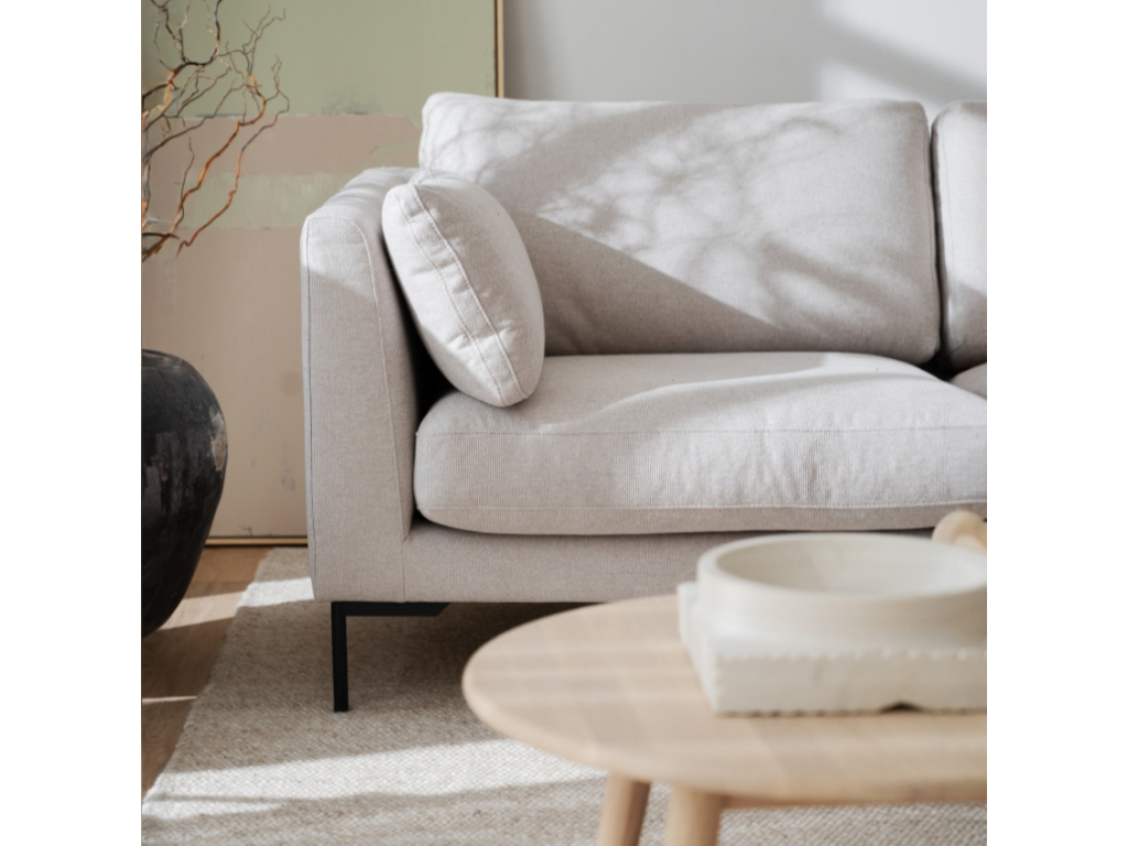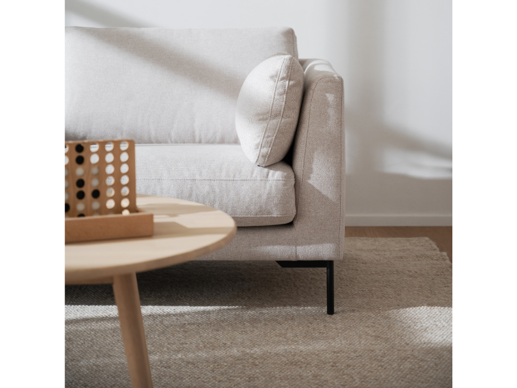 Pohovku CORWIN od značky ROWICO si zamilujete! O váš dokonalý odpočinek se postará čalounění ve světle béžovém odstínu, které je odolné proti oděru a zároveň příjemné na dotek. Celkový vzhled pohovky doplňuje elegantní černě lakovaná kovová podnož. Certifikace FSC® navíc potvrzuje, že výroba probíhala s ohledem na životní prostředí. Pohovka CORWIN svými proporcemi nabídne prostorné a pohodlné místo pro 2 až 3 osoby. Váš interiér můžete dokonale sladit – série CORWIN nabízí také podnožku, třímístnou a rohovou pohovku. Odpočiňte si a relaxujte ve stylu!
