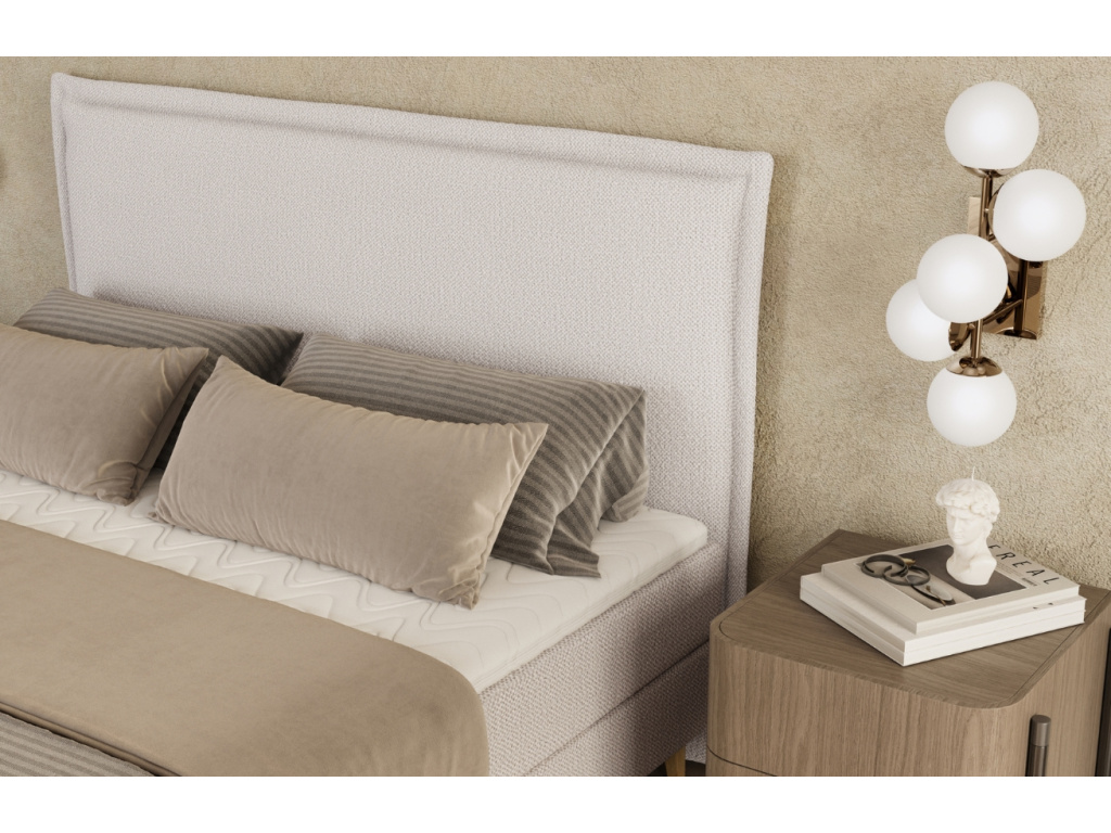ProhlédnoutSvětle béžová čalouněná postel boxspring CALMA 140 x 200 cm