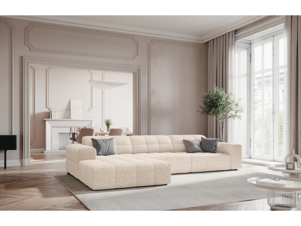 Rohovou pohovku Chicago od značky Cosmopolitan Design si zamilujete! O vaše maximální pohodlí se postará její žinylkové čalounění ve světle béžovém odstínu, které je odolné proti oděru a zároveň příjemné na dotek. Probarvené nitě vytvářejí poutavou 3D strukturu se stínovým a lesklým efektem. Pohovka Chicago svými proporcemi nabídne prostorné a pohodlné místo až pro 4 osoby. Pro sjednocení vašeho sedacího koutu doporučujeme pohovku doplnit také stylovým křeslem nebo podnožkou ze stejnojmenné série. Všechny produkty nabízíme v několika barvách. Odpočiňte si a relaxujte ve stylu!