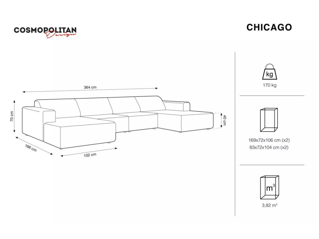 Luxus a maximální pohodlí – to do vaší společenské místnosti přinese rohová pohovka Chicago od značky Cosmopolitan Design! Žinylkové čalounění ve světle béžovém odstínu je odolné proti oděru a zároveň velmi příjemné až téměř hedvábné na dotek. Probarvené nitě vytvářejí poutavou 3D strukturu se stínovým a lesklým efektem. Pohovka Chicago svými proporcemi nabídne prostorné místo až pro 6 osob a hodí do interiérů ve skandinávském nebo glamour stylu. Pro sjednocení vašeho sedacího koutu doporučujeme pohovku doplnit také stylovým křeslem nebo podnožkou ze stejnojmenné série. Všechny produkty nabízíme v několika barvách. Odpočiňte si a relaxujte ve stylu!