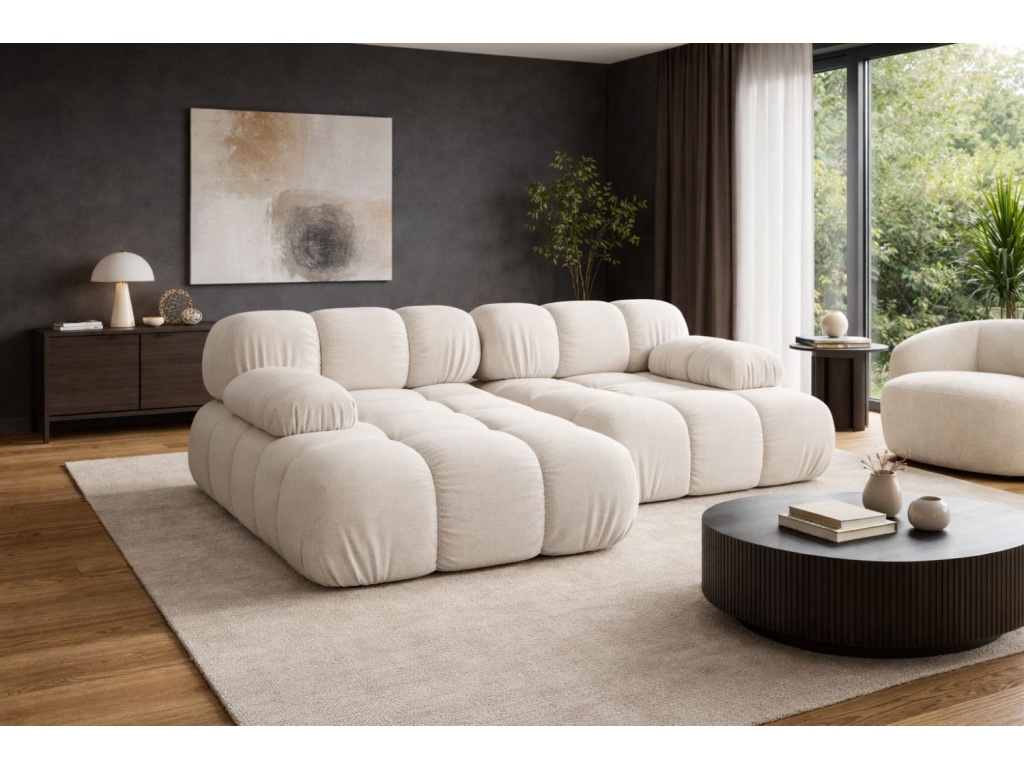 Rohová trojmístná pohovka Bellis spojuje ikonický design s maximálním pohodlím. Její elegantní zaoblené linie a propracované čalounění vdechnou interiéru jedinečný styl inspirovaný retro estetikou 70. let, doplněnou o moderní vzhled. Pružinové moduly zajišťují ideální rovnováhu mezi měkkostí a oporou, takže sezení je pohodlné i při každodenním používání. Pohovka je čalouněna výraznou 3D látkou Sonic s trojrozměrnou strukturou a jemným leskem, která podtrhuje její moderní charakter a je příjemná i odolná pro každodenní používání. K dispozici je také v dalších typech látek a barevných provedeních, takže si ji snadno přizpůsobíte svému interiéru. Bellis se stane přirozenou dominantou obývacího pokoje a vytvoří prostor, kde se snoubí styl s pohodlím. Skvěle ji doplní jednoduchý konferenční stolek a jemné textilie, které nechají vyniknout její výrazný tvar.