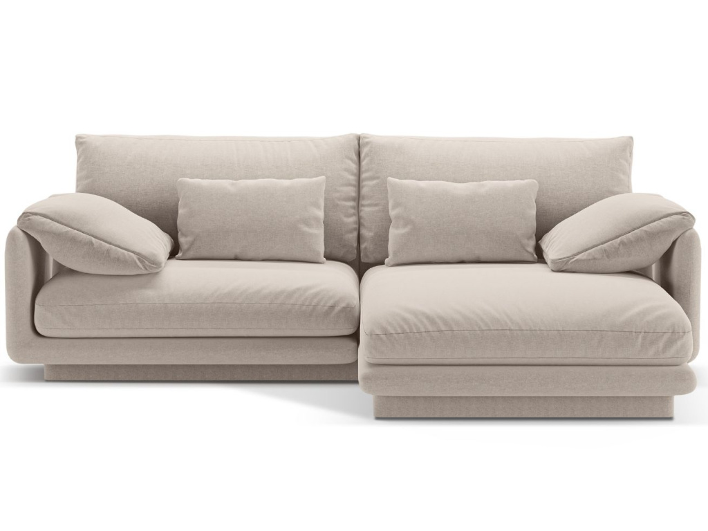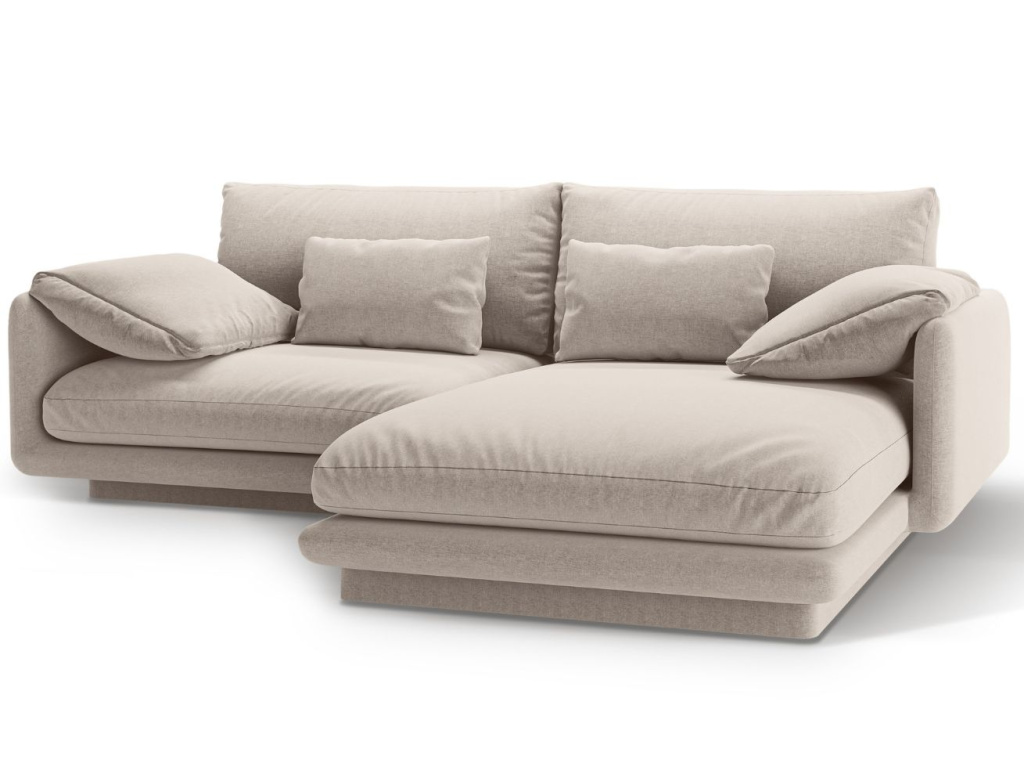 Rohová trojmístná pohovka Torino je elegantní a pohodlná volba pro každodenní relaxaci. Její nadčasový design spojuje klasickou siluetu s moderními proporcemi a měkkými liniemi. Výrazným prvkem jsou polstrované pohyblivé područky, které zajišťují variabilní pohodlí a spolu s extra měkkými polštáři vytvářejí příjemné zázemí pro odpočinek. Sedák s vysoce elastickou pěnou a vlnovými pružinami poskytuje stabilní oporu i dlouhodobé pohodlí. Povrch pohovky tvoří luxusní látka Wind, která je hebká na dotek, jemně lesklá a proměnlivá podle dopadu světla. Je nejen vizuálně atraktivní, ale i velmi odolná a snadno udržovatelná, takže zvládne i náročný provoz domácnosti. Kolekce Torino se skvěle hodí do moderních, skandinávských i urban interiérů. Doplnit ji můžete o ladící konferenční stolek, měkké polštáře, hřejivý pléd nebo elegantní vázu s květinami.