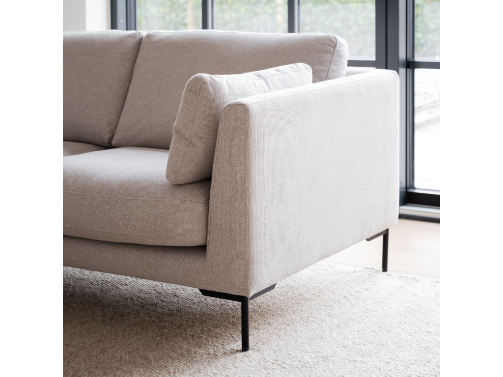 Rohovou pohovku CORWIN od značky ROWICO si zamilujete! O váš dokonalý odpočinek se postará čalounění ve světle béžovém odstínu, které je odolné proti oděru a zároveň příjemné na dotek. Celkový vzhled pohovky doplňuje elegantní černě lakovaná kovová podnož. Certifikace FSC® navíc potvrzuje, že výroba probíhala s ohledem na životní prostředí. Pohovka CORWIN svými proporcemi nabídne prostorné a pohodlné místo pro až pro 5 osob. Váš interiér můžete dokonale sladit – série CORWIN nabízí také podnožku, dvoumístnou, třímístnou a rohovou pohovku. Odpočiňte si a relaxujte ve stylu!
