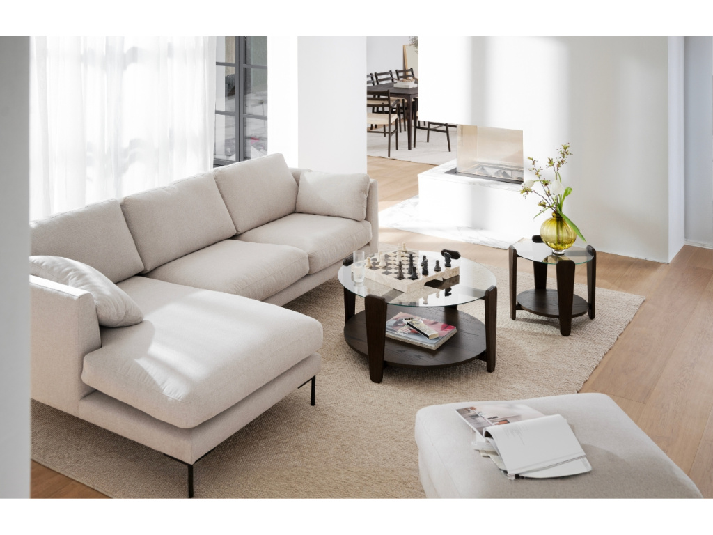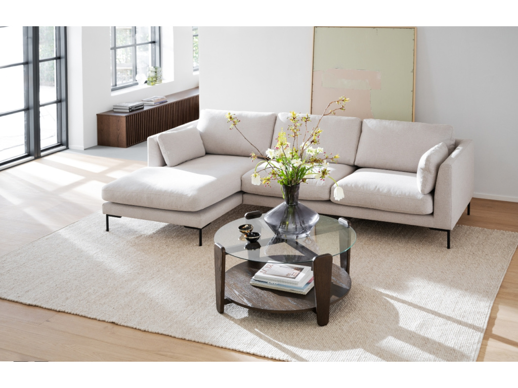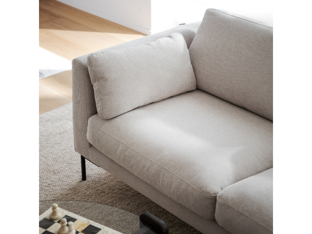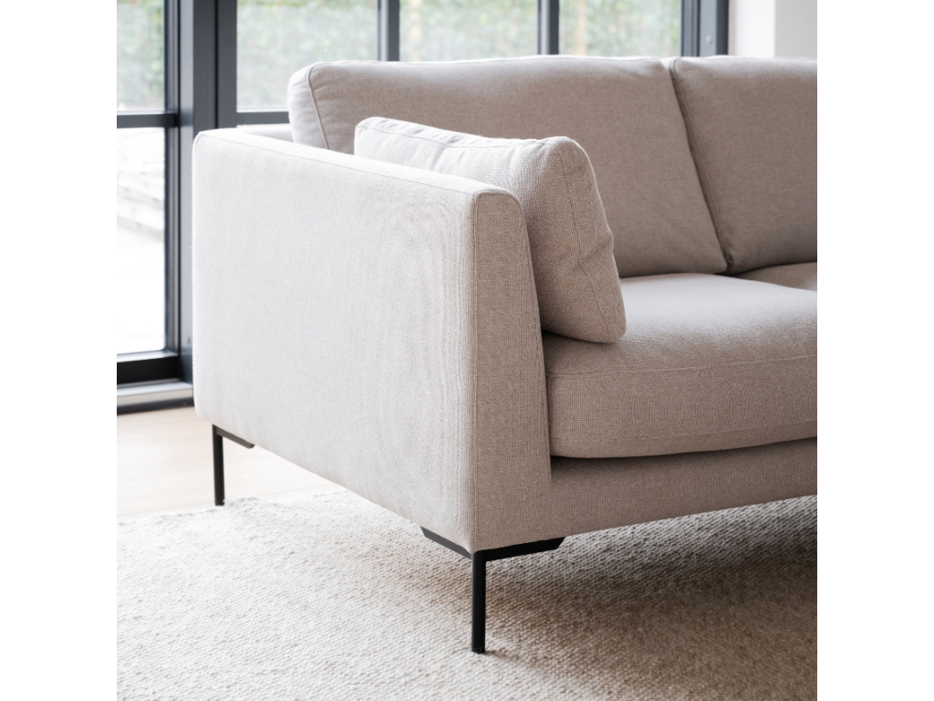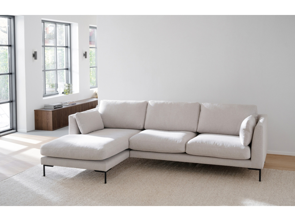 Rohovou pohovku CORWIN od značky ROWICO si zamilujete! O váš dokonalý odpočinek se postará čalounění ve světle béžovém odstínu, které je odolné proti oděru a zároveň příjemné na dotek. Celkový vzhled pohovky doplňuje elegantní černě lakovaná kovová podnož. Certifikace FSC® navíc potvrzuje, že výroba probíhala s ohledem na životní prostředí. Pohovka CORWIN svými proporcemi nabídne prostorné a pohodlné místo pro 3 až 4 osoby. Váš interiér můžete dokonale sladit – série CORWIN nabízí také podnožku, dvoumístnou, třímístnou a rohovou pohovku. Odpočiňte si a relaxujte ve stylu!