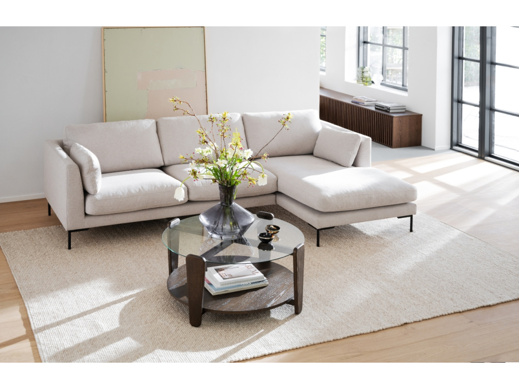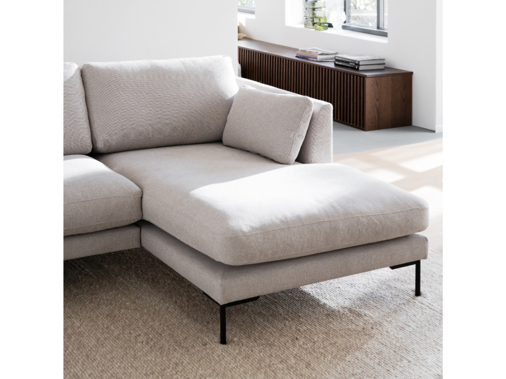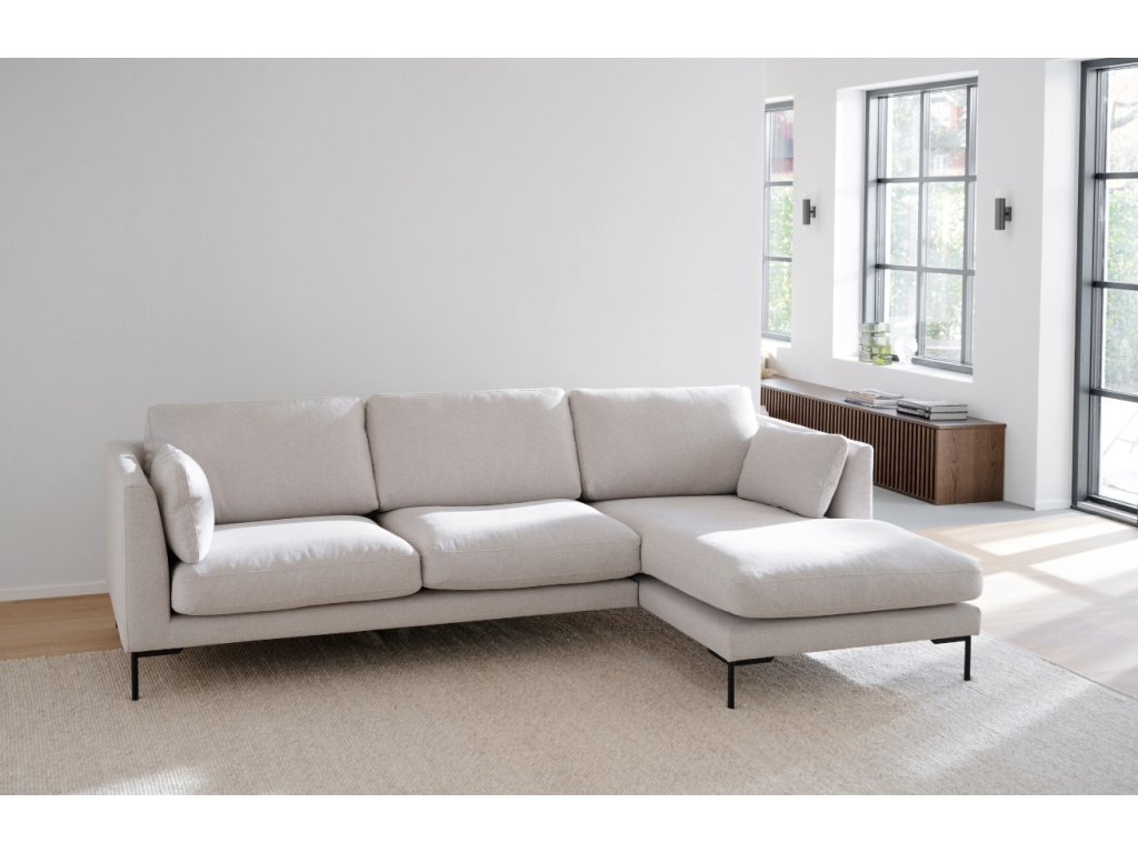 Rohovou pohovku CORWIN od značky ROWICO si zamilujete! O váš dokonalý odpočinek se postará čalounění ve světle béžovém odstínu, které je odolné proti oděru a zároveň příjemné na dotek. Celkový vzhled pohovky doplňuje elegantní černě lakovaná kovová podnož. Certifikace FSC® navíc potvrzuje, že výroba probíhala s ohledem na životní prostředí. Pohovka CORWIN svými proporcemi nabídne prostorné a pohodlné místo pro 3 až 4 osoby. Váš interiér můžete dokonale sladit – série CORWIN nabízí také podnožku, dvoumístnou, třímístnou a rohovou pohovku. Odpočiňte si a relaxujte ve stylu!