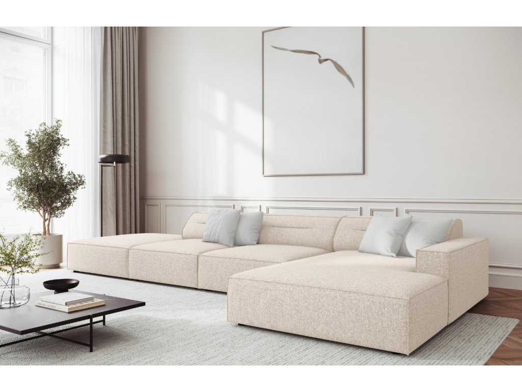 Rohovou pohovku Lupus od značky Windsor & Co si zamilujete! O vaše maximální pohodlí se postará její žinylkové čalounění ve světle béžovém odstínu, které je odolné proti oděru a zároveň příjemné na dotek. Probarvené nitě vytvářejí poutavou 3D strukturu se stínovým a lesklým efektem. Také se pyšní certifikátem OEKO-TEX® STANDARD 100, což znamená, že je textilie zcela bez chemikálií. Pohovka Lupus svými proporcemi nabídne prostorné a pohodlné místo až pro 5 osob. Pro sjednocení vašeho sedacího koutu doporučujeme pohovku doplnit také stylovým křeslem nebo dalšími pohovkami ze stejnojmenné série. Všechny produkty nabízíme v několika barvách. Odpočiňte si a relaxujte ve stylu!