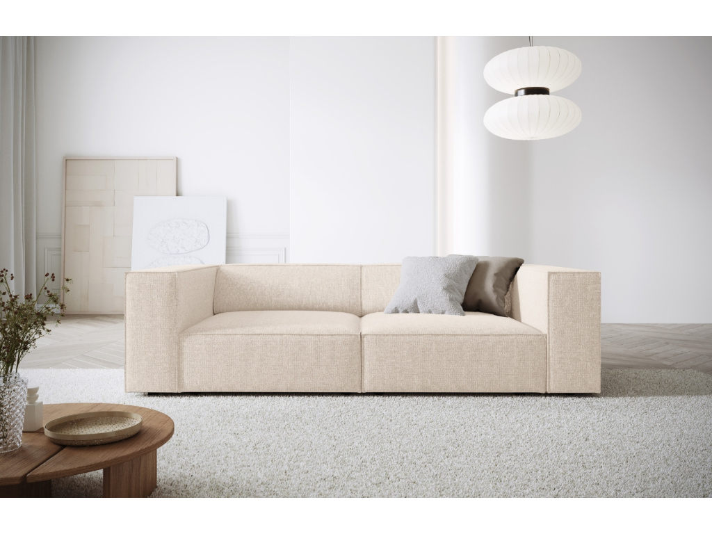 Třímístná pohovka Arendal od značky Cosmopolitan Design je výrazný kus nábytku, který v sobě spojuje jednoduchost a eleganci. O vaše maximální pohodlí se postará její žinylkové čalounění ve světle béžovém odstínu, které je odolné proti oděru a zároveň příjemné na dotek. Probarvené nitě vytvářejí poutavou 3D strukturu se stínovým a lesklým efektem. Pohovka se hodí do interiérů ve skandinávském nebo glamour stylu. Pohovku Arendal nabízíme v devíti barevných provedeních. Odpočívejte ve stylu!