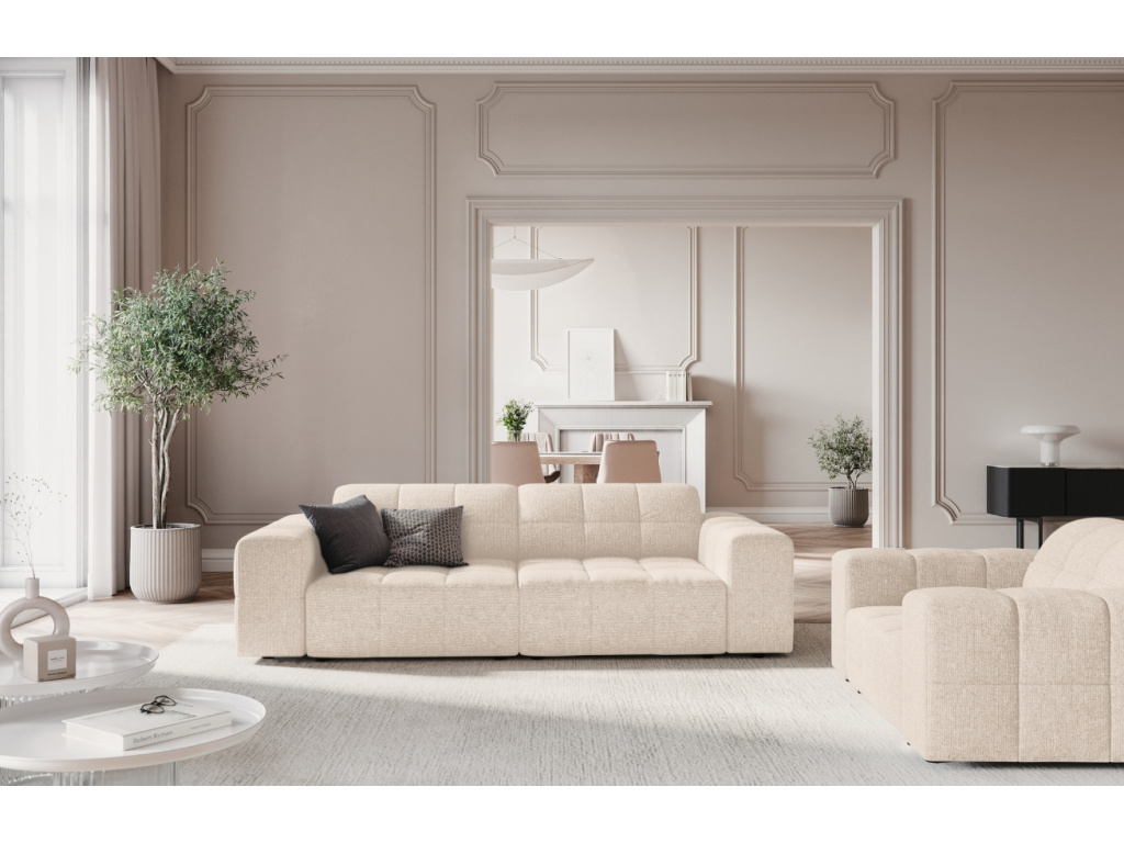 Třímístná pohovka Chicago od značky Cosmopolitan Design vás na první pohled oslní charakteristickým prošíváním, které vybízí k nespoutané relaxaci. Žinylkové čalounění ve světle béžovém odstínu je odolné proti oděru a zároveň velmi příjemné až téměř hedvábné na dotek. Probarvené nitě vytvářejí poutavou 3D strukturu se stínovým a lesklým efektem. Atraktivní design s nádechem luxusu a klasiky jsou přesné známky pohovky Chicago. Tento skvostný kus nábytku nejen zaujme na první pohled, ale především zútulní váš interiér ve skandinávském nebo glamour stylu. Kolekce Chicago osloví každého, kdo hledá designové inovace a nebojí se experimentovat. A že není světlá béžová barva tou pravou pro vás? Pohovky jsou dostupné v několika různých variantách!