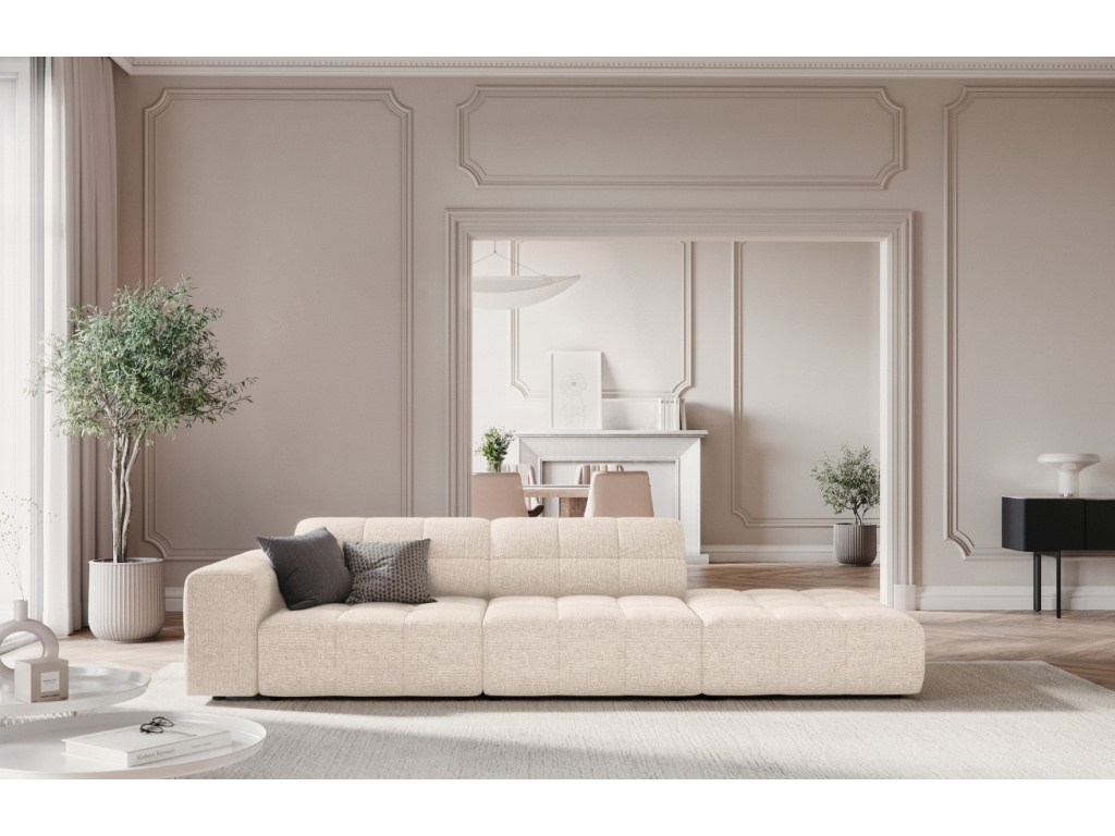 Třímístná pohovka Chicago od značky Cosmopolitan Design je výrazný kus nábytku, který v sobě spojuje jednoduchost a eleganci. O vaše maximální pohodlí se postará její žinylkové čalounění ve světle béžovém odstínu, které je odolné proti oděru a zároveň příjemné na dotek. Probarvené nitě vytvářejí poutavou 3D strukturu se stínovým a lesklým efektem. Pohovka se hodí do interiérů ve skandinávském nebo glamour stylu. Doplnit ji můžete o křeslo či podnožku ze stejnojmenné kolekce – nabízíme je v několika barevných provedení. Odpočívejte ve stylu!