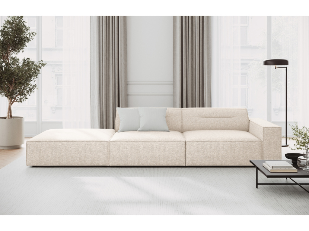 Třímístná pohovka Lupus od značky Windsor & Co je výrazný kus nábytku, který v sobě spojuje jednoduchost a eleganci. O vaše maximální pohodlí se postará její žinylkové čalounění ve světle béžovém odstínu, které je odolné proti oděru a zároveň příjemné na dotek. Probarvené nitě vytvářejí poutavou 3D strukturu se stínovým a lesklým efektem. Také se pyšní certifikátem OEKO-TEX® STANDARD 100, což znamená, že je textilie zcela bez chemikálií. Doplnit ji můžete o křeslo či další pohovky ze stejnojmenné kolekce – nabízíme je v několika barevných provedení. Odpočívejte ve stylu!