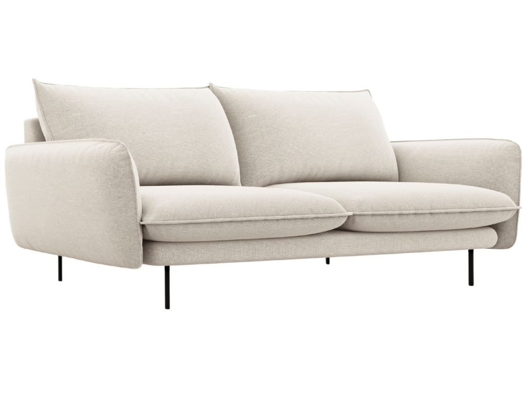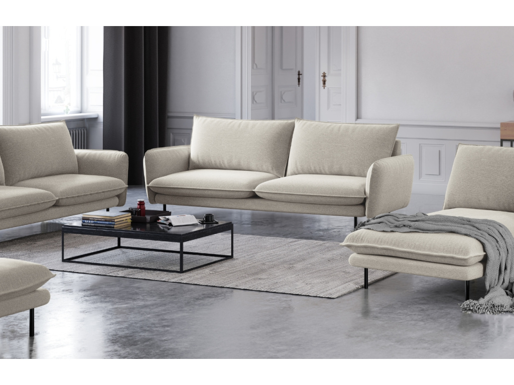 Pohovka Vienna od Cosmopolitan Design je poctou nadčasové eleganci, smyslu pro detail a dokonale vyváženým proporcím. Jemně tvarované opěrky, měkké polštáře a ladná silueta jí propůjčují lehkost, která zaujme na první pohled. Kontrastní černě lakovaná kovová podnož dodává celku vizuální vzdušnost a současně zajišťuje stabilitu. O vaše maximální pohodlí se postará čalounění ze strukturované látky s výraznou texturou – příjemnou na dotek, vizuálně zajímavou a zároveň mimořádně odolnou vůči každodennímu používání. Vienna vždy zapadne s lehkostí a zároveň dodá prostoru výraz. A protože každý domov má jiné potřeby, kolekce Vienna je k dispozici v několika velikostech – od kompaktních modelů ideálních do menších bytů až po velkorysé pohovky, na které se vejde celá rodina i s chlupatým parťákem.