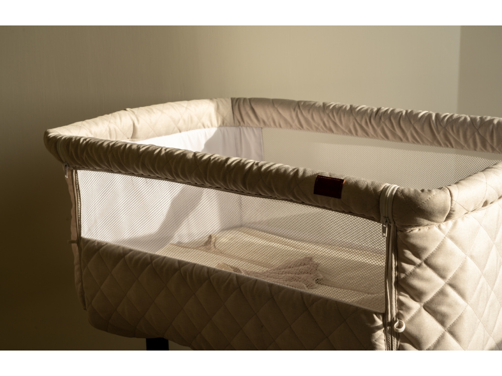 Pro první měsíce života všeho miminka je praktická postýlka Quax Side by Side jako stvořená. Bude ideálním společníkem, pokud ji budete chtít umístit vedle postele a mít tak děťátko stále u sebe. Díky čtyřem kolečkům na podnoži se s ní snadno manipuluje. Postýlka se pyšní měkoučkým elegantním potahem, který lze v případě potřeby jednoduše sundat a vyprat. Na něm najdete část na zip, kterou lze odepnout a vy tak budete mít k ratolesti blíže. Díky průsvitné síťce na děťátko také snadno dohlédnete. Postýlka má nastavitelnou výšku a v případě, že miminko trpí refluxem, ji můžete na jedné straně jednoduše zvýšit. Součástí postýlky je také měkká matrace o velikosti 84 x 50 cm. Tato postýlka je výjimečně všestranná a přizpůsobivá a skvěle zapadne i do menších prostor. Hliníková podnož je v krásném designu dřeva.