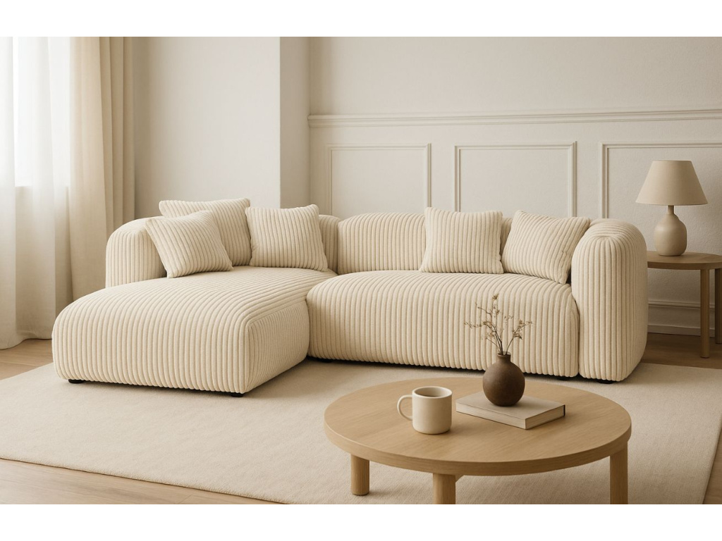 Podívám seSvětle béžová manšestrová rohová pohovka Martina 280 cm, levá