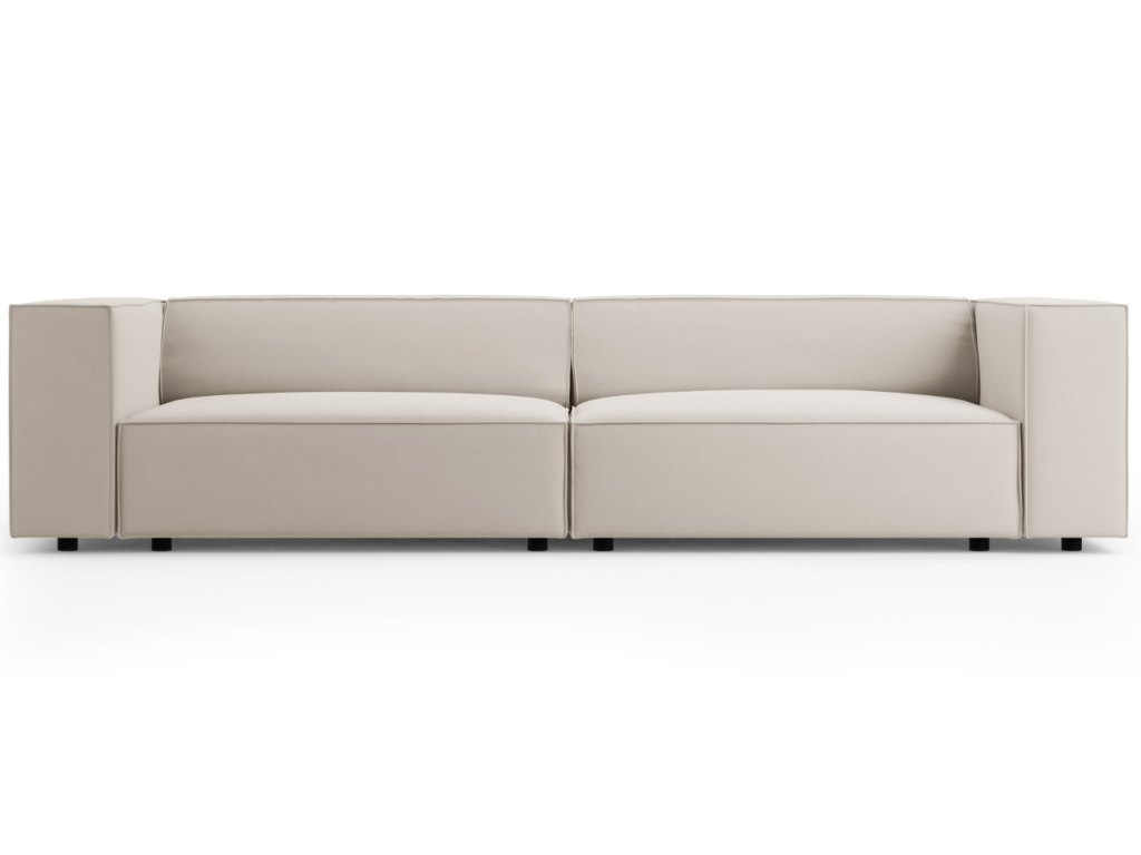 Čtyřmístná pohovka Arendal od značky Cosmopolitan Design je výrazný kus nábytku, který v sobě spojuje jednoduchost a eleganci. O vaše maximální pohodlí se postará její jemně lesklé sametové čalounění ve světle béžovém odstínu, které je hebké a příjemné na dotek. Tkanina je velmi odolná proti oděru a absorpci tekutin, čímž zaručí dlouhodobé používání bez známek opotřebení. Pohovku Arendal nabízíme v desíti barevných provedeních, a je možné ji doplnit o stylové křeslo a podnožku. Odpočívejte ve stylu!
