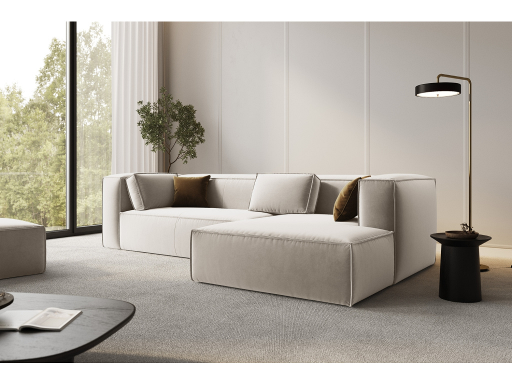 Podívám seSvětle béžová sametová rohová pohovka Mackay 282 cm, pravá