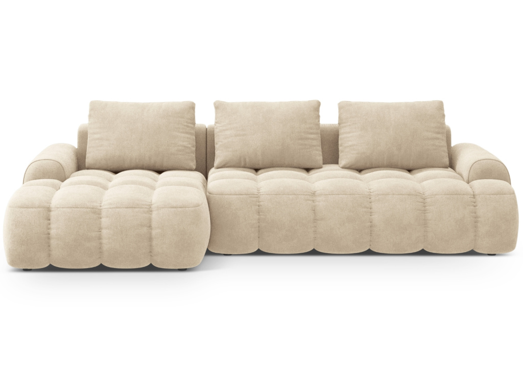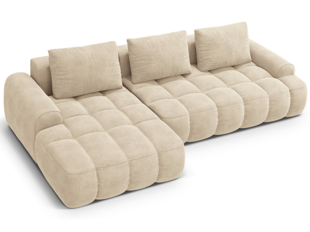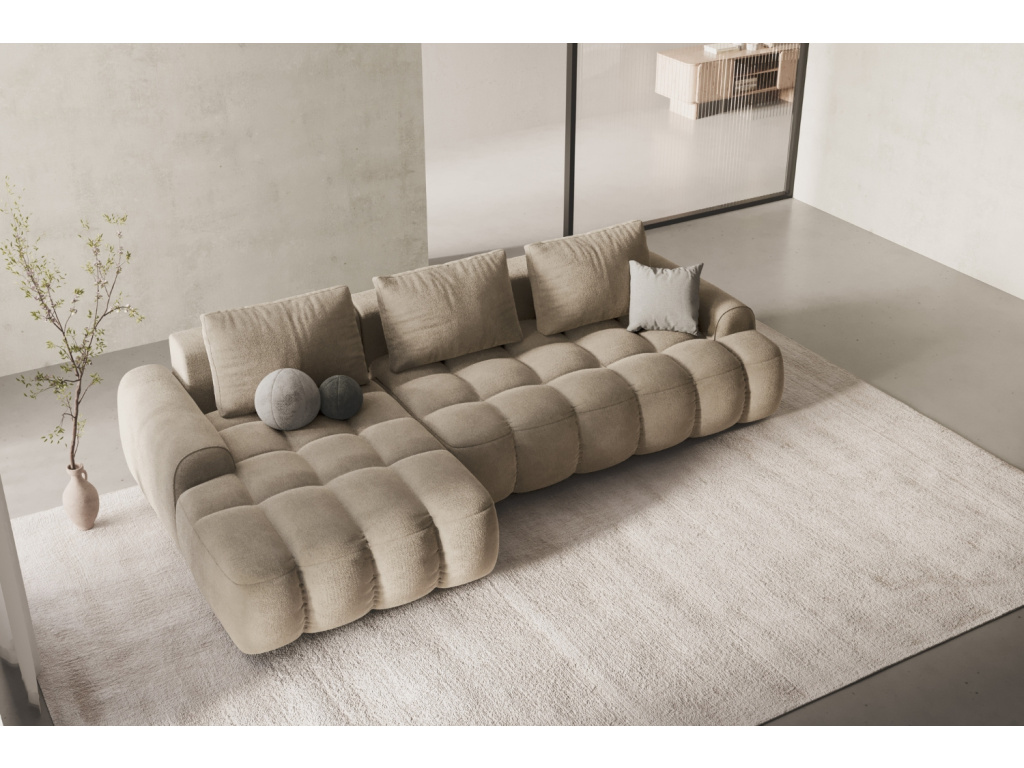 Podívám seSvětle béžová sametová rozkládací pohovka Linz 275 cm, levá