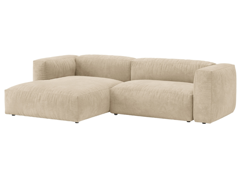 Světle béžová sametová rozkládací pohovka Martina 280 cm, levá