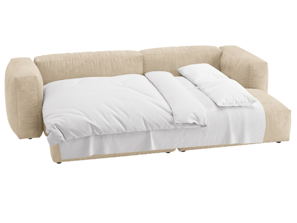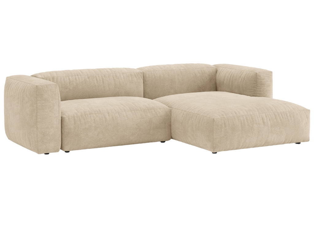 Světle béžová sametová rozkládací pohovka Martina 280 cm, pravá