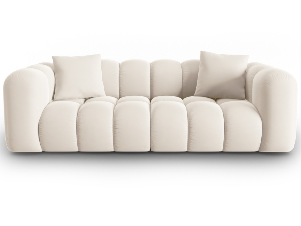 Velkolepá třímístná pohovka Halley od značky Windsor & Co zaujme charakteristickým prošíváním. Bublinkové sedáky, opěradla a područky vybízejí k nespoutané relaxaci. Pohovka je čalouněná sametovou látkou s jemným leskem ve světle béžovém provedení, která je měkká a velice příjemná na dotek. Tkanina je velmi odolná proti oděru a absorpci tekutin, čímž zaručí dlouhodobé používání bez známek opotřebení. Látka navíc prošla cigaretovým testem, tudíž je odolná proti doutnání a vznícení. Tento skvostný kus nábytku nejen zaujme na první pohled, ale především zútulní váš interiér ve skandinávském nebo glamour stylu. Příjemným bonusem jsou elegantní polštářky, které doladí pohovku k dokonalosti. Pro sjednocení vašeho sedacího koutu doporučujeme pohovku doplnit také o podnožkou ze stejnojmenné série. Všechny produkty nabízíme v několika barvách. Odpočiňte si a relaxujte ve stylu!