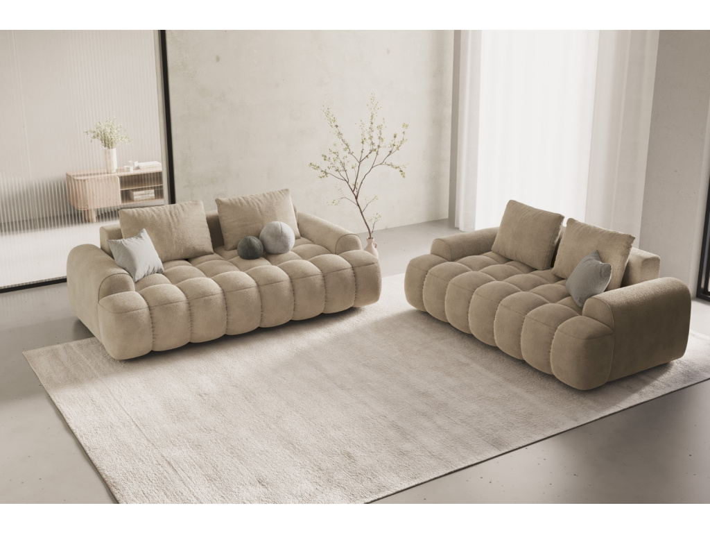 Podívám seSvětle béžová sametová trojmístná pohovka Linz 200 cm