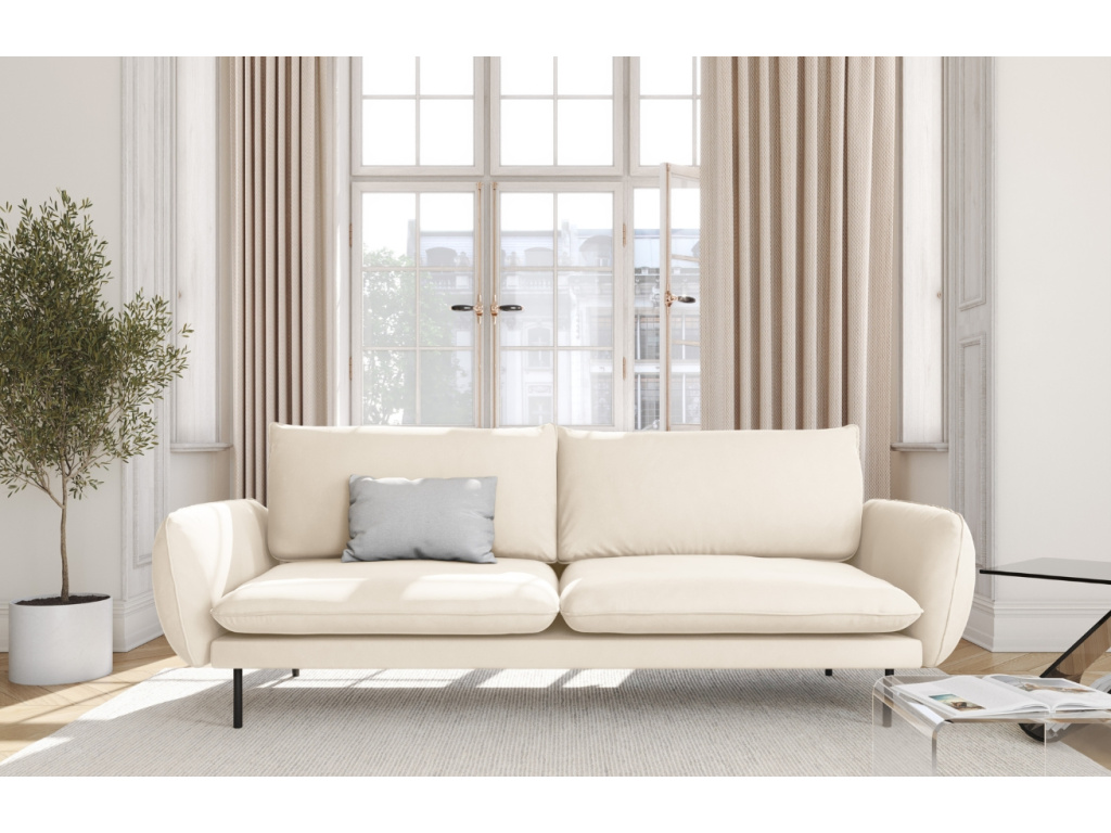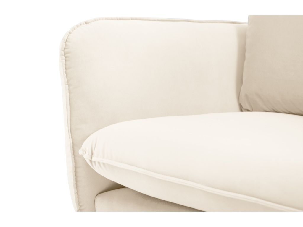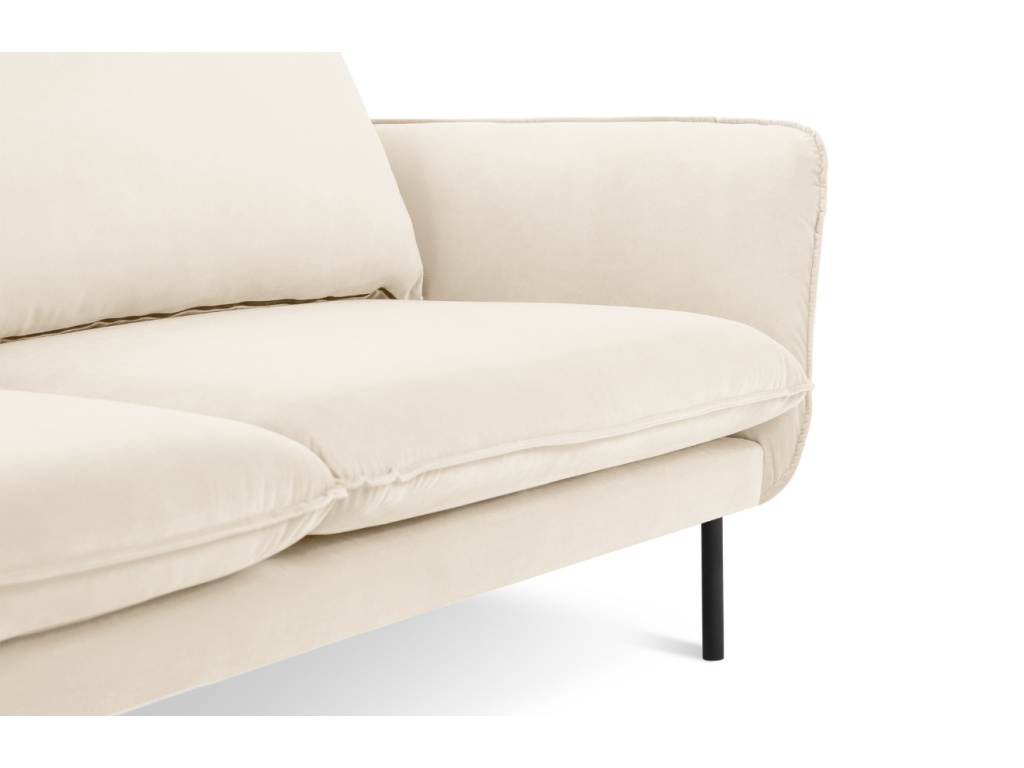 Pohovka Vienna od Cosmopolitan Design je poctou nadčasové eleganci, smyslu pro detail a dokonale vyváženým proporcím. Jemně tvarované opěrky, měkké polštáře a ladná silueta jí propůjčují lehkost, která zaujme na první pohled. Kontrastní černě lakovaná kovová podnož dodává celku vizuální vzdušnost a současně zajišťuje stabilitu. Luxusní sametový potah je nejen krásný na pohled, ale i příjemný na dotek – hladký, hebký a přirozeně elegantní. Na výběr je široká paleta pečlivě vybraných odstínů, které se snadno sladí s jemně minimalistickým interiérem i s odvážnějšími koncepty. Vienna vždy zapadne s lehkostí a zároveň dodá prostoru výraz. A protože každý domov má jiné potřeby, kolekce Vienna je k dispozici v několika velikostech – od kompaktních modelů ideálních do menších bytů až po velkorysé pohovky, na které se vejde celá rodina i s chlupatým parťákem.