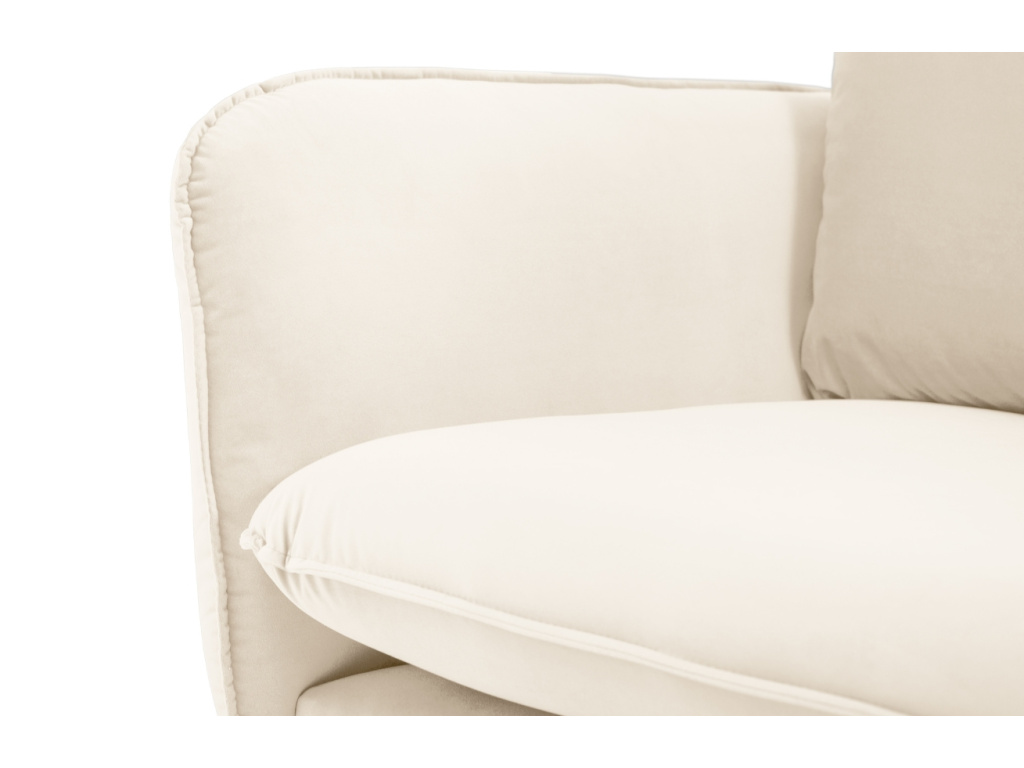 Křeslo Vienna od Cosmopolitan Design je poctou nadčasové eleganci, smyslu pro detail a dokonale vyváženým proporcím. Jeho jemně tvarované opěrky, měkký sedák a ladná silueta mu propůjčují vizuální lehkost, která zaujme na první pohled – a ještě více při posezení. Kontrastní černě lakovaná kovová podnož dodává celku vizuální vzdušnost a současně zajišťuje stabilitu. Luxusní sametový potah je nejen krásný na pohled, ale i příjemný na dotek – hladký, hebký a přirozeně elegantní. Na výběr je široká paleta pečlivě vybraných odstínů, které se snadno sladí s jemně minimalistickým interiérem i s odvážnějšími koncepty. Vienna vždy zapadne s lehkostí a zároveň dodá prostoru výraz. Skvěle se uplatní jako solitér pro chvíle klidu, stejně jako součást větší sedací sestavy. A právě tu můžete vytvořit s celou kolekcí Vienna, která kromě křesel nabízí také elegantní pohovky a pohodlnou lenošku – ideální pro ty, kteří chtějí styl i komfort dotáhnout do posledního detailu.