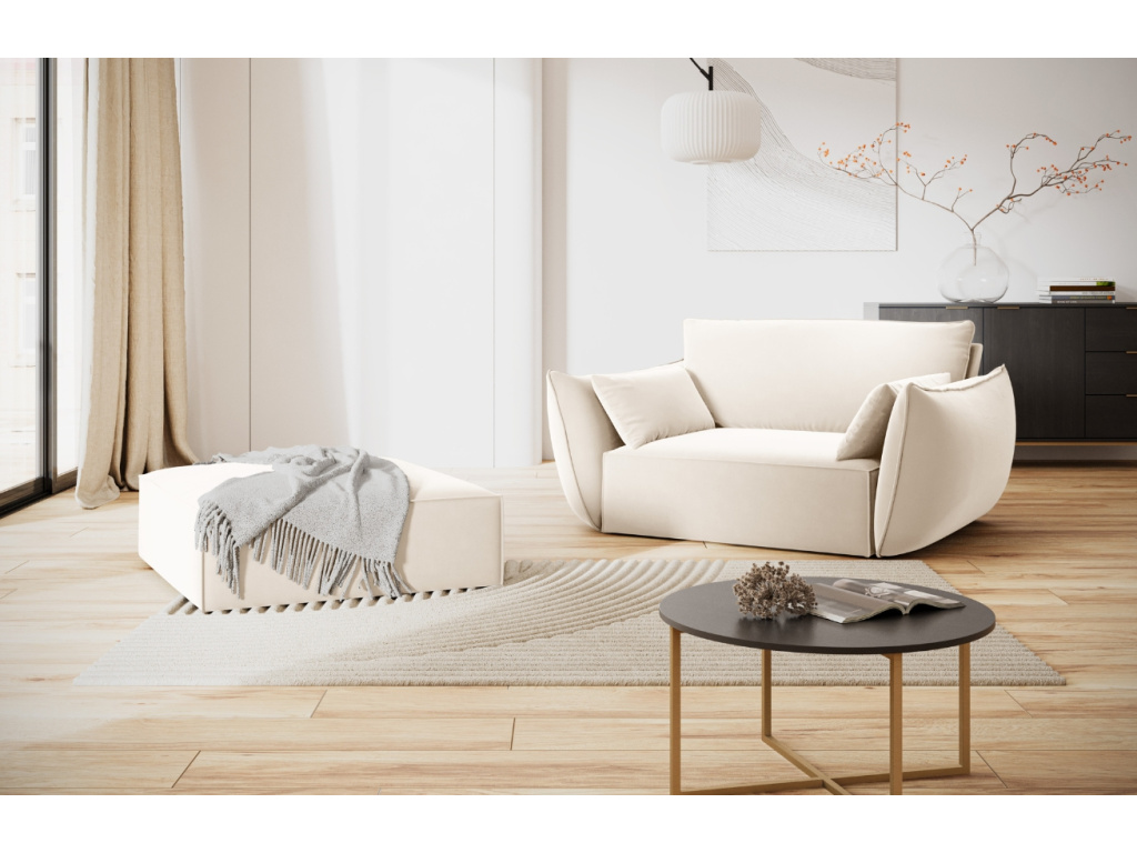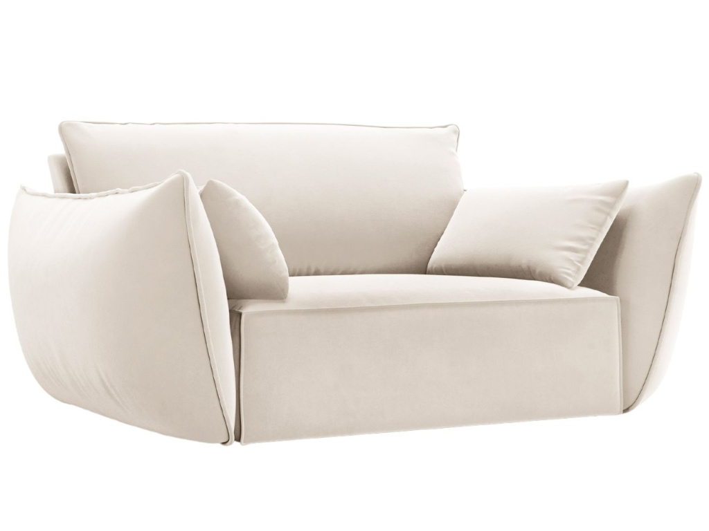 Klasické křeslo Kaelle od značky Micadoni zaujme elegantním nízkým sezením a tvarovanými područkami, které mu dodávají jedinečný vzhled. Obdélníková silueta s propracovaným lemováním kolem područek a opěradel připomíná tvary polštářů, které poskytují pohodlí a činí křeslo ideálním doplňkem moderního obývacího pokoje. Součástí sezení jsou malé polštářky, které dodává styl i komfort. Celý povrch je čalouněn sametovou tkaninou, která působí čistě a luxusně. Tento model lze navíc snadno kombinovat s dalším nábytkem ze stejné kolekce, který je dostupný jak v žinylkovém, tak v sametovém provedení.
