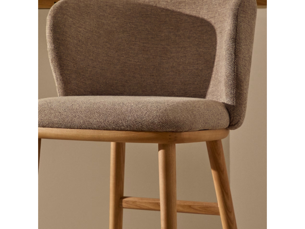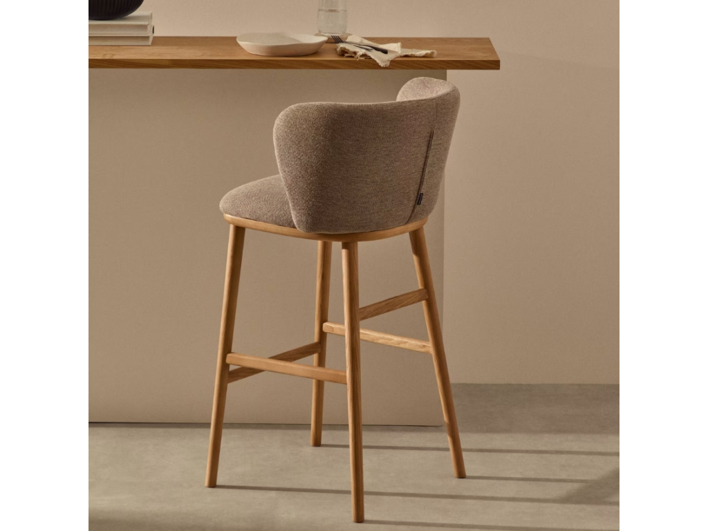 Světle hnědá barová židle Kave Home Ciselia 75 cm s dřevěnou podnoží