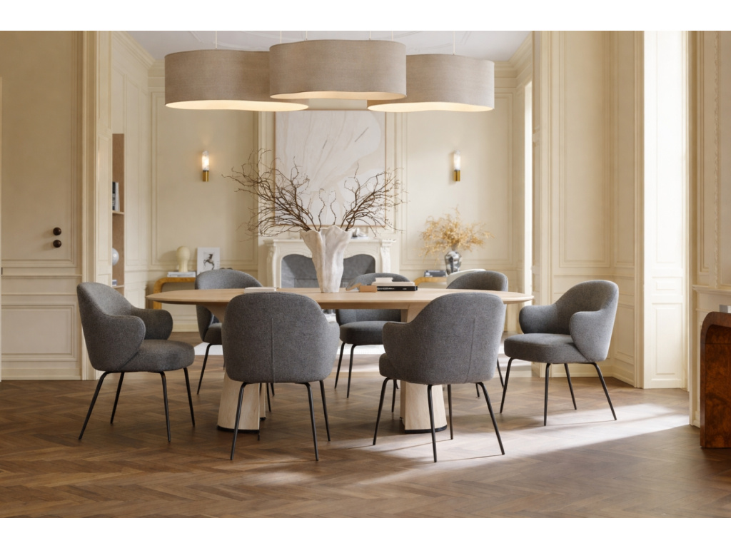 Značka DAN-FORM přichází s jedinečnou řadou židlí Bae, které se svým čistým jednoduchým designem zazáří v každém moderním interiéru. Stanou se skvělým doplňkem pro stylový jídelní stůl v domácnosti – využití ale najdou i v hotelových či komerčních prostorech. Se svým pohodlným polstrováním, čalouněním bouclé látkou a tvarem měkce zaoblených područek, které tvoří prodloužení zad, je židle Bae jedinečným designovým kouskem. Vybrat si ji můžete z několika barevných variant, aby dokonale splnila vaše vizuální preference.