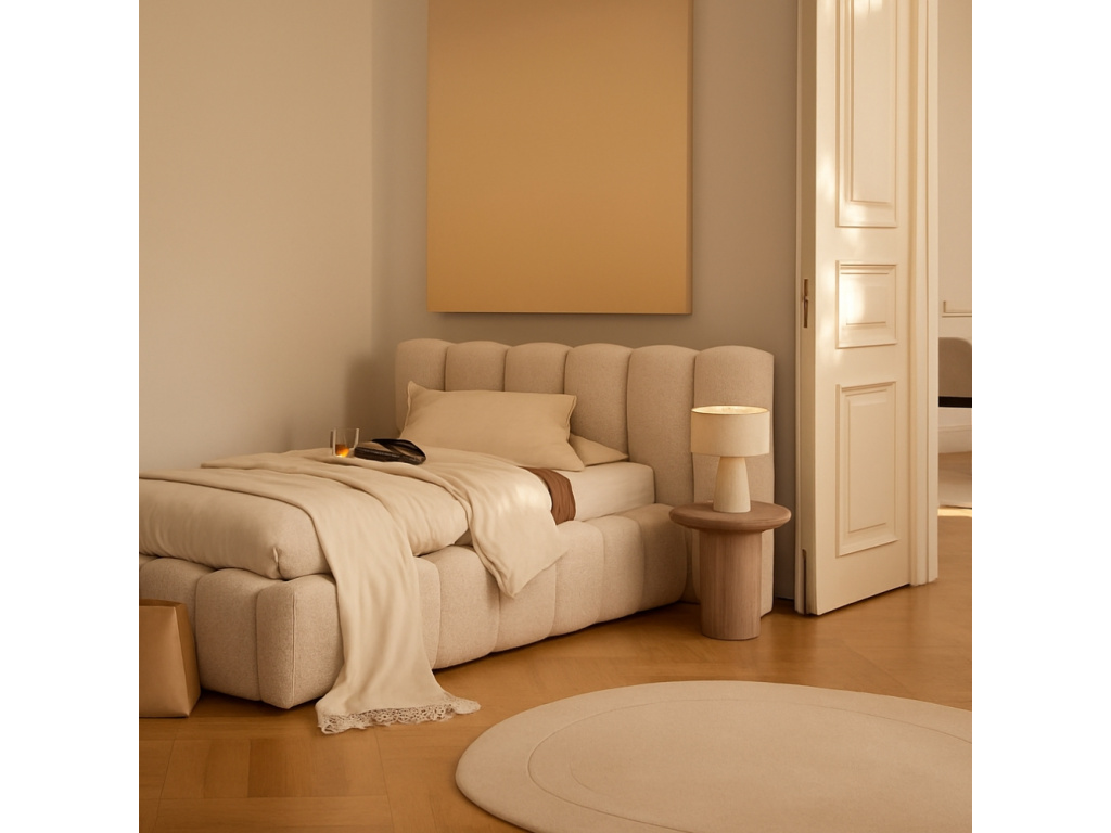 Postel Lupine od Micadoni představuje moderní luxus v té nejčistší podobě – decentní, smyslný a promyšlený do posledního detailu. Každá křivka a proporce byla navržena s důrazem na rovnováhu mezi estetikou a pohodlím, aby postel působila hřejivě, přirozeně a lákala k odpočinku. Lupine nezapomíná ani na praktičnost. Pod matrací se ukrývá prostorný úložný box s plynulým výklopným mechanismem, ideální pro ložní prádlo, sezónní textilie nebo věci, které chcete mít vždy po ruce, ale ne na očích. Opravdové kouzlo se však skrývá v její strukturované látce Moly, která je velmi příjemná až hedvábná na dotek. Moly má navíc hydrofobní úpravu – tekutiny zůstávají na povrchu a lze je snadno setřít, aniž by se vsákly do vláken. Postel si tak zachová svůj vzhled i po letech používání, aniž by ztratila na eleganci. Certifikace Oeko-Tex® Standard 100 navíc potvrzuje, že látka je zcela bezpečná a bez škodlivých látek, takže si můžete užívat pohodlí s naprostým klidem a bez kompromisů. Lupine je postel, která propojuje design, komfort i chytrou funkčnost. Přinese do ložnice styl, do vašeho večera uvolnění a do každého rána mimořádně příjemný start.
