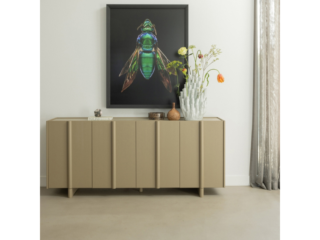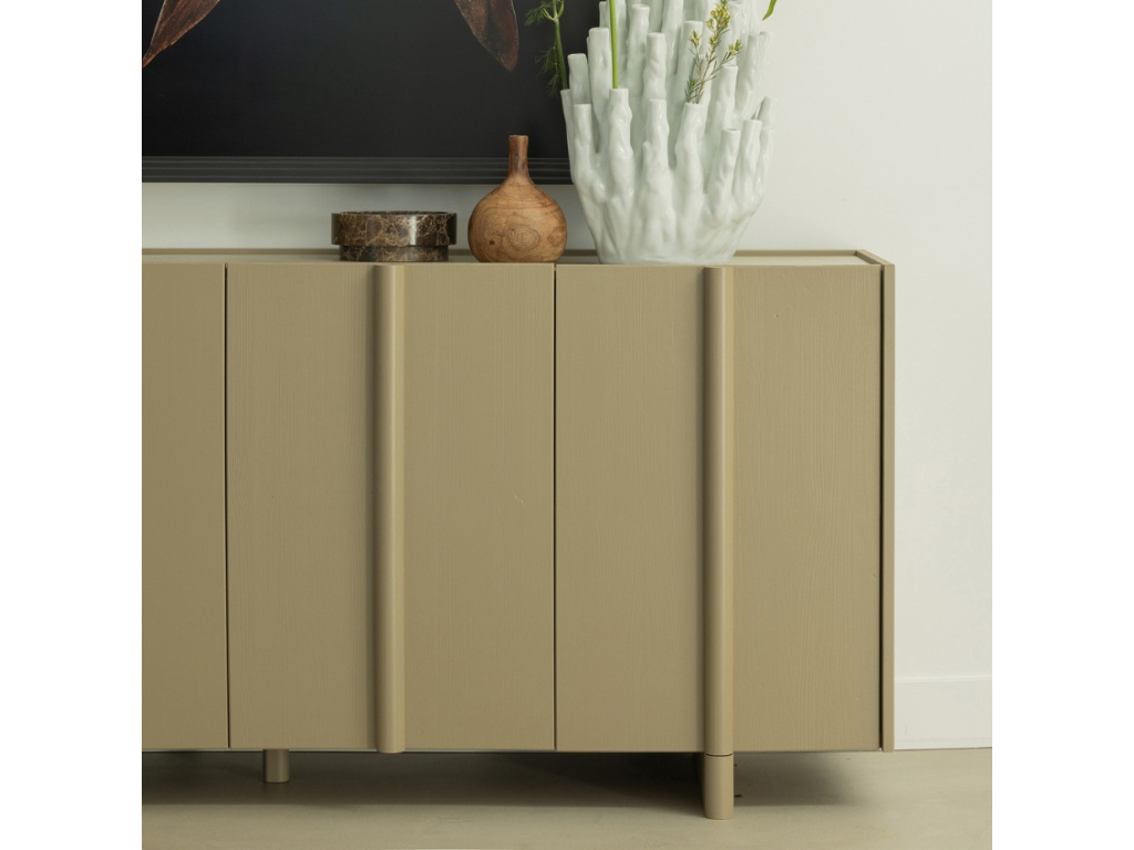 Dřevěná komoda Basu představuje nadčasový a kreativní design. Hravé rovné linie ve spojení s matnou povrchovou úpravou dřeva vytváří unikátní vzhled. Celkový design formují čtyři výrazné dřevěné úchyty, které dotváří atraktivitu celé komody. Dva krajní úchyty po stranách dále přechází v dřevěnou podnož, tím komoda získává na originalitě a osobitosti. Komoda se bude skvěle vyjímat ve skandinávských a moderních interiérech. Dřevo je opatřeno certifikací FSC, takže máte jistotu, že pochází z odpovědných zdrojů.