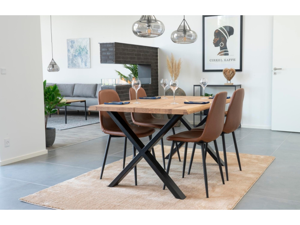 Moderní jídelní židle Nordic Living Raya je židle s charakterem. Stylové čalounění z ekokůže ve světle hnědé barvě a černě lakovaná kovová podnož vytváří elegantní spojení, které vnese do vašeho domova styl a unikátnost. Raya bude klenotem nejen moderních interiérů. Dopřejte vašim chvílím v jídelně designový a pohodlný zážitek.