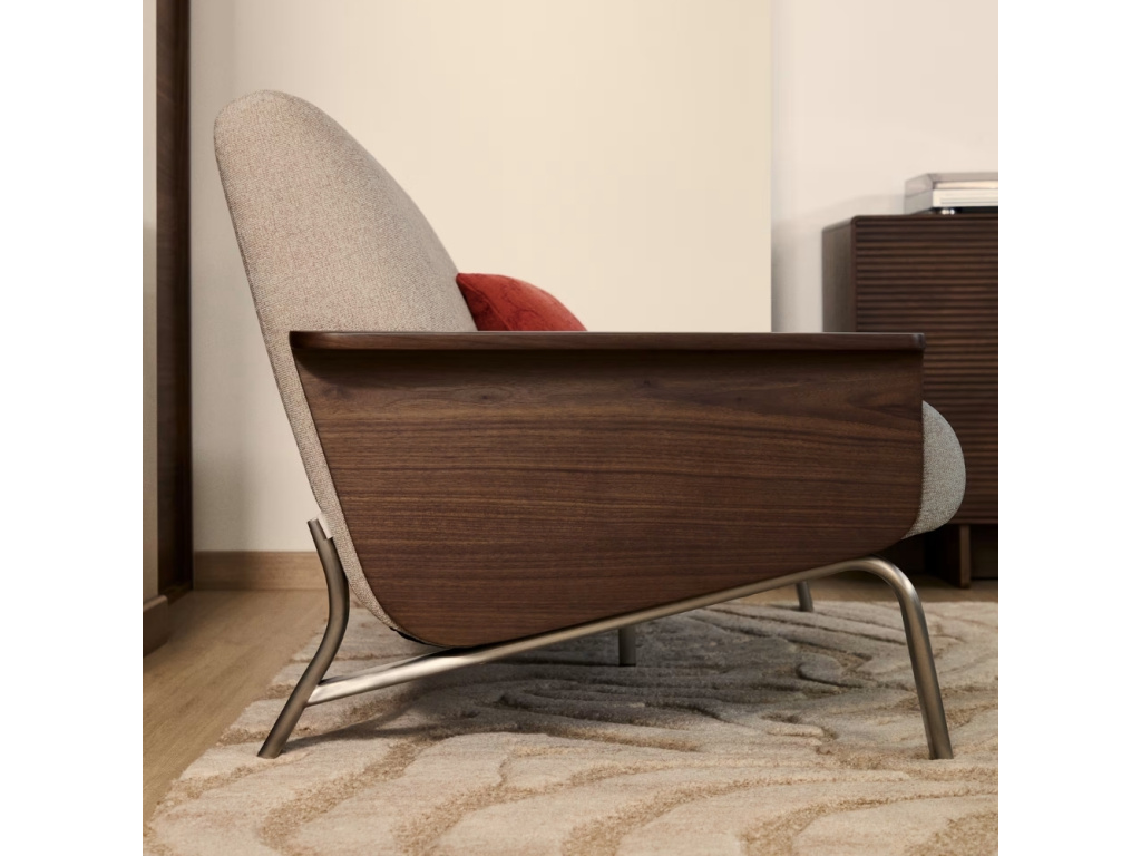 Pohovka Amsen je jako stvořená pro chvíle, kdy si chcete na chvilku odpočinout a vypnout. Její tvarované skořepina z ořechové dýhy obepíná tělo s jemností, která vás doslova zve k usazení. Světle hnědé čalounění působí měkce a příjemně, zatímco štíhlé nohy z broušené nerezové oceli dodávají pohovce moderní šmrnc. Ať už ji postavíte do obývacího pokoje, nebo třeba do pracovny, Amsen si vás získá svou pohodlností i elegancí. Vyváženě kombinuje přírodní materiály a elegantní linie, které krásně zapadnou do různých typů interiérů – od skandinávských po současné městské. Pohovka je vyrobena z FSC® 100% certifikovaného dřeva, takže si kromě stylu domů přinesete i dobrý pocit z udržitelného výběru. Amsen je jednoduše kousek, ke kterému se budete rádi vracet každý den (hlavně když ji doplníte stejnojmennou podnožkou!). Vybrat si můžete hned ze dvou dostupných velikostí.