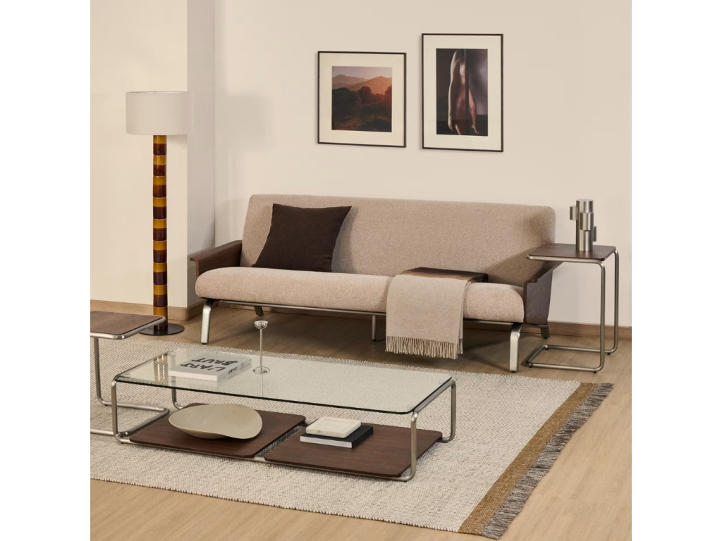Pohovka Amsen je jako stvořená pro chvíle, kdy si chcete na chvilku odpočinout a vypnout. Její tvarované skořepina z ořechové dýhy obepíná tělo s jemností, která vás doslova zve k usazení. Světle hnědé čalounění působí měkce a příjemně, zatímco štíhlé nohy z broušené nerezové oceli dodávají pohovce moderní šmrnc. Ať už ji postavíte do obývacího pokoje, nebo třeba do pracovny, Amsen si vás získá svou pohodlností i elegancí. Vyváženě kombinuje přírodní materiály a elegantní linie, které krásně zapadnou do různých typů interiérů – od skandinávských po současné městské. Pohovka je vyrobena z FSC® 100% certifikovaného dřeva, takže si kromě stylu domů přinesete i dobrý pocit z udržitelného výběru. Amsen je jednoduše kousek, ke kterému se budete rádi vracet každý den (hlavně když ji doplníte stejnojmennou podnožkou!). Vybrat si můžete hned ze dvou dostupných velikostí.