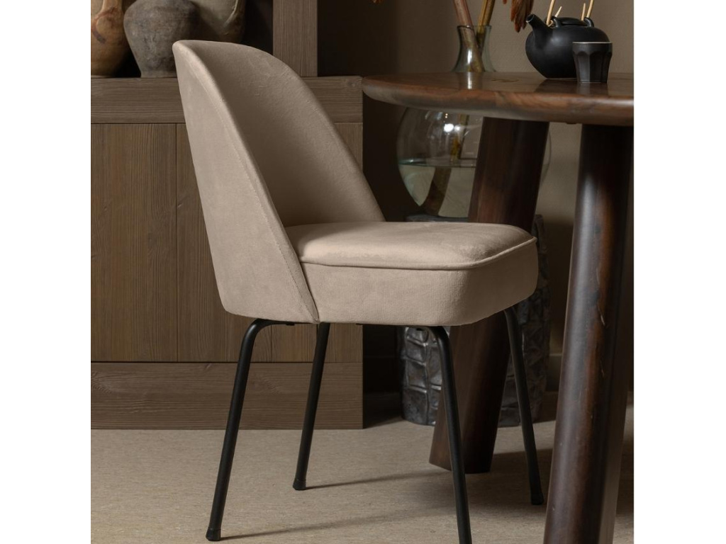 Židle Tergi je působivou židlí v moderním stylu se sametovým čalouněným sedákem světle hnědé barvy a černě lakovanou kovovou podnoží. Kombinace kvalitní potahové látky, která je velmi příjemná na dotek, a stabilní podnože tvoří velmi atraktivní spojení, které zaujme nejen na pohled, ale také svým komfortem. Židle Tergi zútulní váš interiér a dodá mu nadčasový design a osobitou atmosféru.
