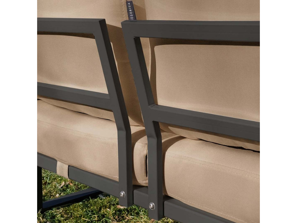 Zažijte nepřekonatelný komfort díky zahradní pohovce MESONICA Soledo z prémiového materiálu. Pohovka ve světle hnědé barvě se pyšní pohodlným, vodoodpudivým sedákem, který si zachovává stálobarevnost. V kombinaci s kovovou, lakovanou podnoží odolnou proti korozi působí moderním a svěžím dojmem. Další výhodou čalouněné pohovky je, že se může pochlubit dlouhou životností, dá se snadno čistit, je ohnivzdorná a je dodávána se dvěma dekorativními polštáři. Zkombinujte pohovku i s dalšími produkty řady Soledo, která je dostupná s bílou nebo antracitovou podnoží a nabízí výběr čalounění z široké palety barev.