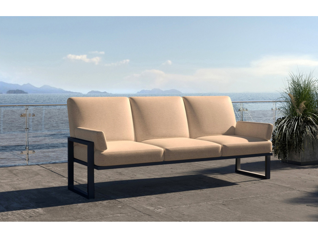Více infoSvětle hnědá třímístná zahradní pohovka MESONICA Soledo s antracitovou podnoží 205 cm