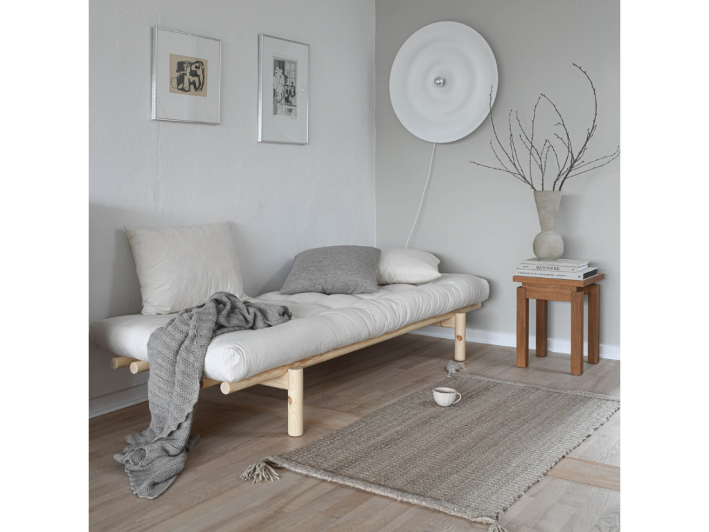 Usaďte se a odpočiňte si na třímístné pohovce Pace od dánské značky Karup Design. Konstrukce z masivního borovicového dřeva s FSC certifikací je doplněna o kvalitní 12cm futonovou matraci, která v sobě kombinuje recyklovaná vlákna a 4cm pěnu. Její jednoduchý skandinávský vzhled v kombinaci s japonskou futunovovu matrací zkrátka nikdy nevyjde z módy! Představuje skvělé řešení především pro menší interiéry, kde oceníte další místo na spaní. Balení navíc obsahuje 2 velké polštáře. Pace je dostupná v široké škále barev matrací a další barvě konstrukce – jaká bude zdobit váš domov?