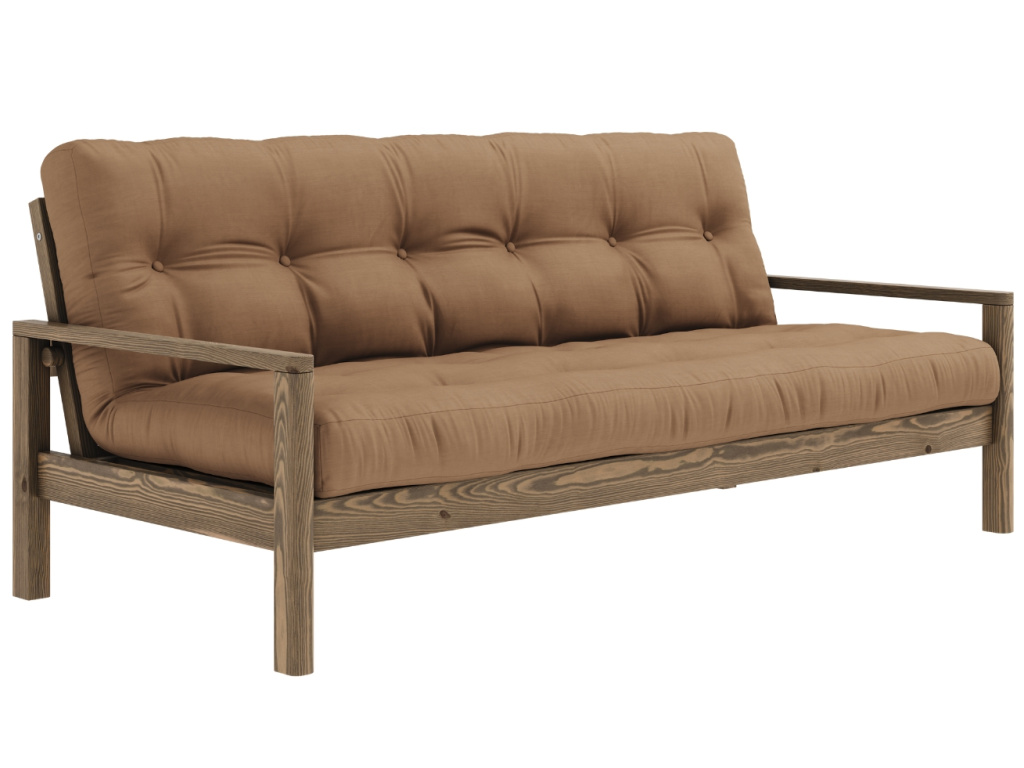 Pohovka nebo postel? Trojmístná rozkládací pohovka Knob od dánské značky Karup Design umí být obojím! Pod dřevěnými područkami se nachází dva nenápadné úchyty, které lze snadno odšroubovat a vy tak během chvilky získáte pohodlné lůžko pro vás nebo vaše hosty. Konstrukce z masivního borovicového dřeva s FSC certifikací je doplněna kvalitní 14cm futonovou matraci, která v sobě kombinuje recyklovaná vlákna a 4 cm pěny. Pohovka Knob fantasticky zapadne do skandinávských a japonských stylů interiérů, do kterých vnese jednoduchost, eleganci a ryzí funkčnost. Představuje skvělé řešení zejména pro menší prostory, do kterých přinese další místo na spaní. Vybrat si ji můžete v další barvě konstrukce či v mnoha barvách matrací.