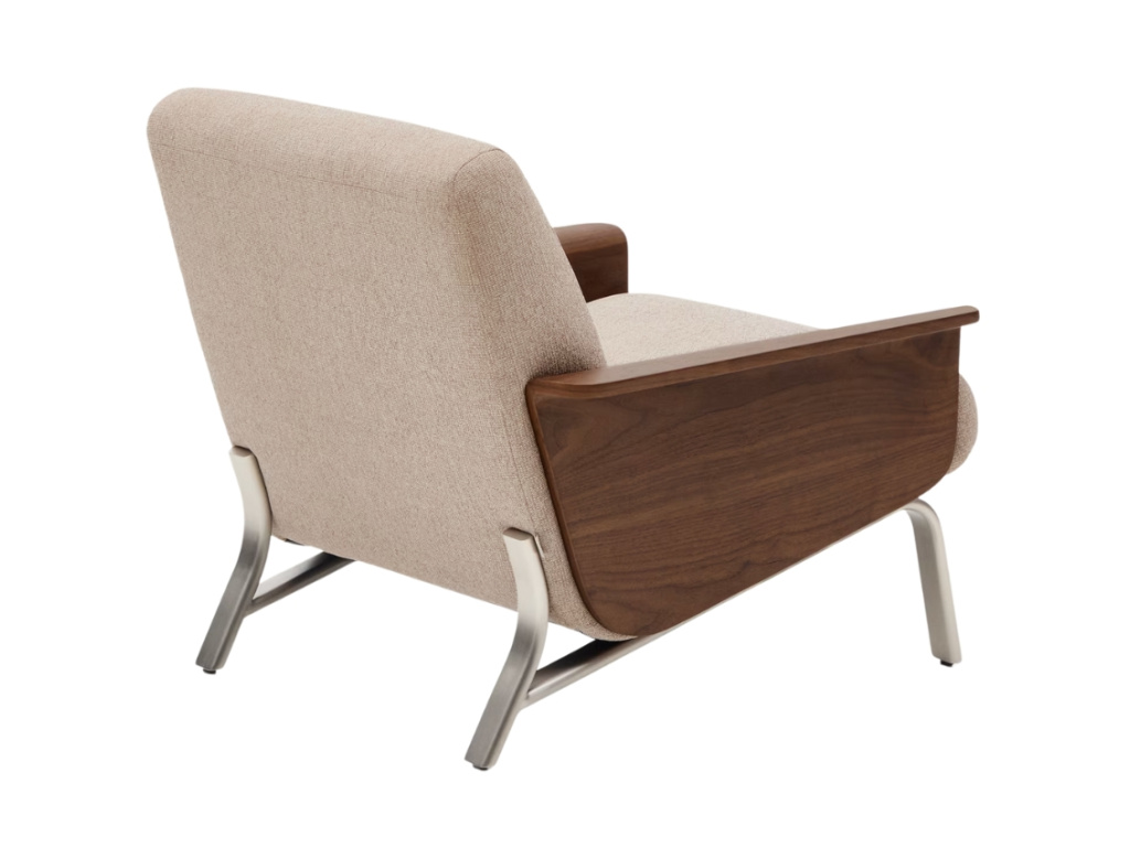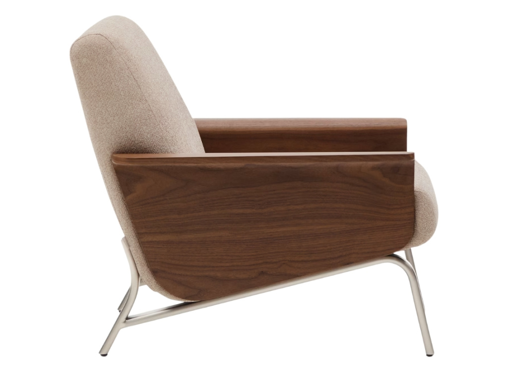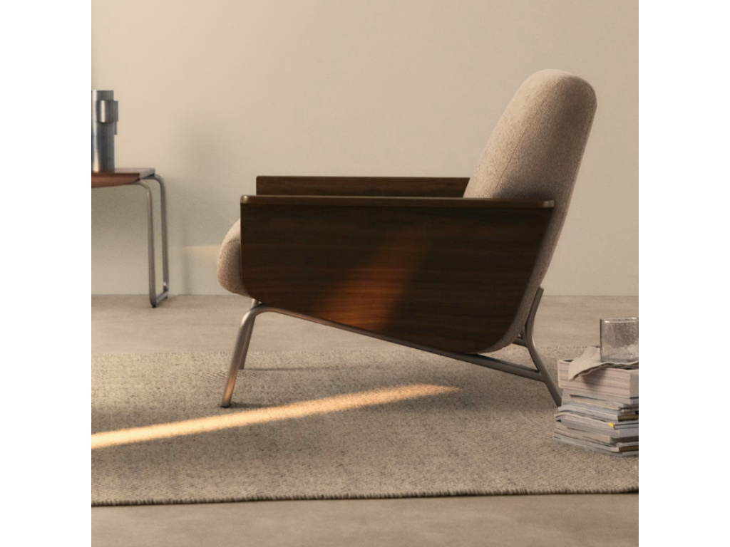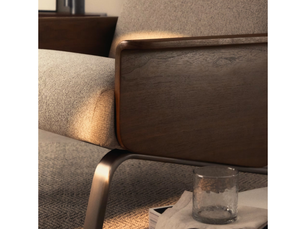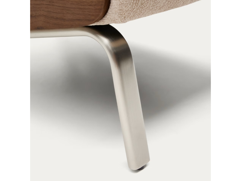Křeslo Amsen je jako stvořené pro chvíle, kdy si chcete na chvilku odpočinout a vypnout. Jeho tvarovaná skořepina z ořechové dýhy obepíná tělo s jemností, která vás doslova zve k usazení. Světle hnědé čalounění působí měkce a příjemně, zatímco štíhlé nohy z broušené nerezové oceli dodávají křeslu moderní šmrnc. Ať už jej postavíte do obývacího pokoje, ložnice nebo klidného čtecího koutku, Amsen si vás získá svou pohodlností i elegancí. Vyváženě kombinuje přírodní materiály a elegantní linie, které krásně zapadnou do různých typů interiérů – od skandinávských po současné městské. Křeslo je vyrobeno z FSC® 100% certifikovaného dřeva, takže si kromě stylu domů přinesete i dobrý pocit z udržitelného výběru. Amsen je jednoduše kousek, ke kterému se budete rádi vracet každý den (hlavně když ho doplníte stejnojmennou podnožkou!).