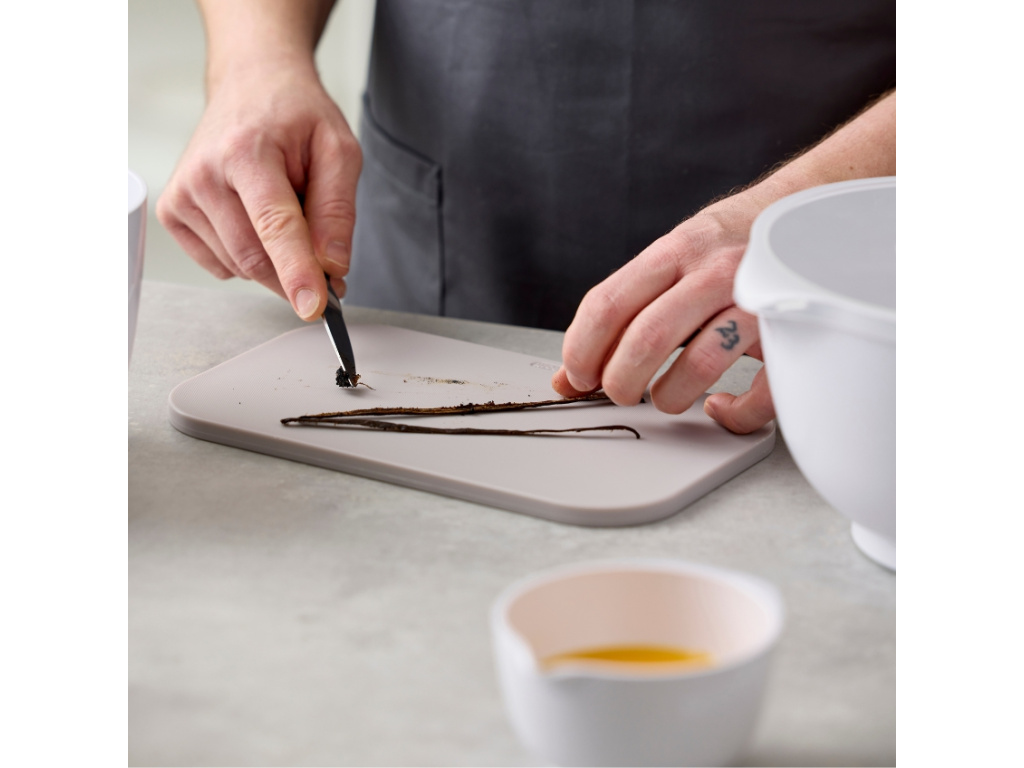 Prkénko Choptima od značky Rosti je spolehlivým a praktickým doplňkem pro každodenní krájení a přípravu potravin. Prkénko je vyrobeno z PE materiálu, který zaručuje dlouhou životnost a odolnost vůči opotřebení. Jeho povrch je šetrný k nožům, což znamená, že čepel zůstane ostrá i po častém používání. Prkénko Choptima je dostupné ve třech barevných provedeních a dalších velikostech, takže si můžete vybrat velikost a barvu, která nejlépe zapadne do vaší kuchyňské výbavy. Pro maximální všestrannost také nabízíme set všech tří velikostí.