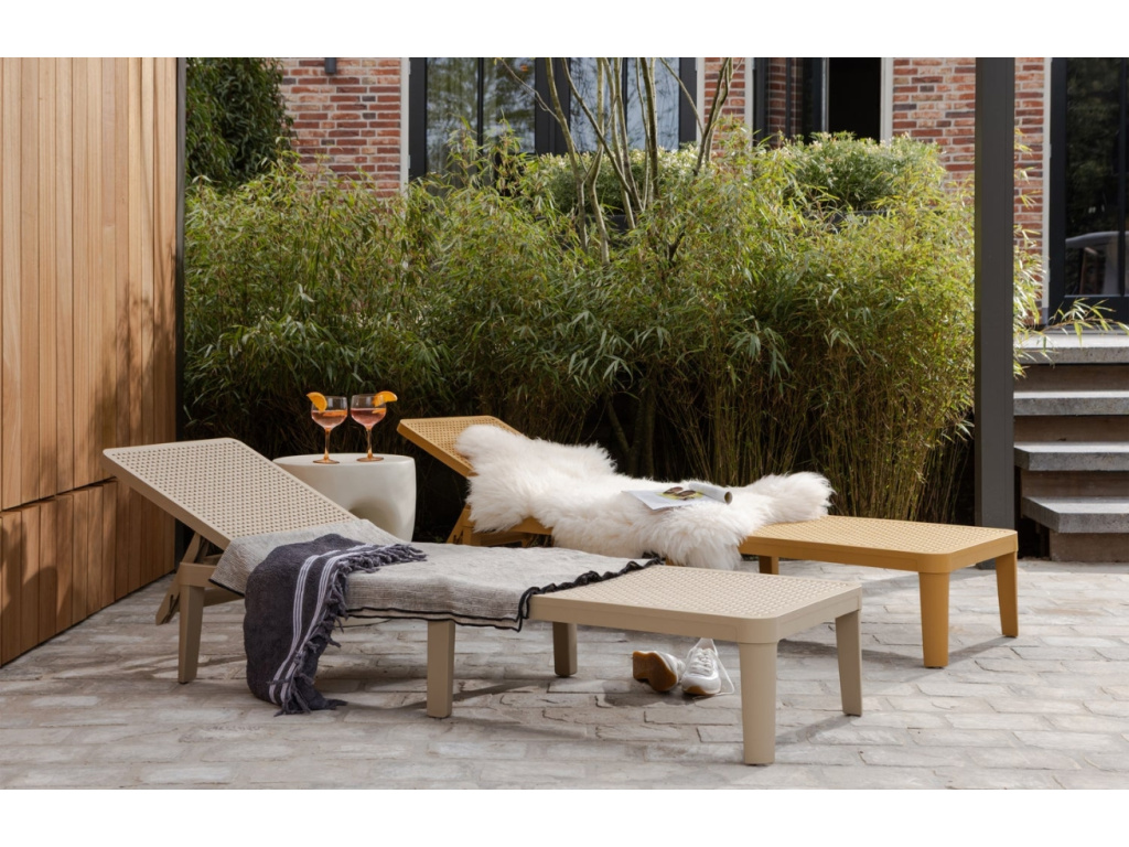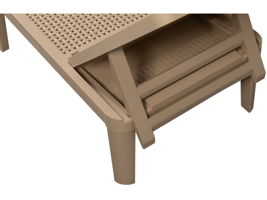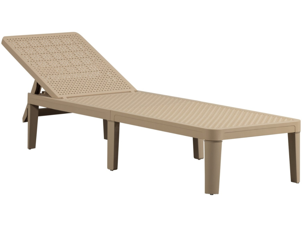 Světle hnědé lehátko Jimmy zaujme čistým designem s jemně zaoblenými liniemi a perforovaným vzorem. Je vyrobené z lehkého, ale mimořádně odolného polypropylenu, díky čemuž se snadno přenáší i udržuje. Opěrku hlavy lze nastavit do čtyř poloh pro maximální pohodlí při relaxaci. V kolekci Jimmy najdete dvě nadčasové barevné varianty.