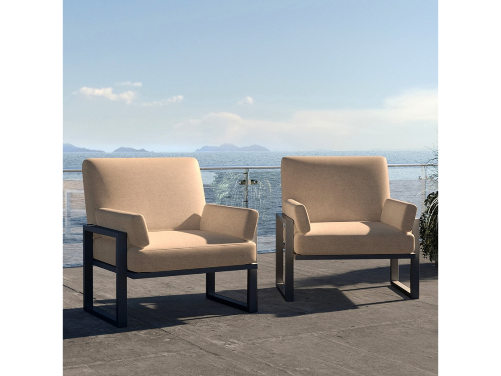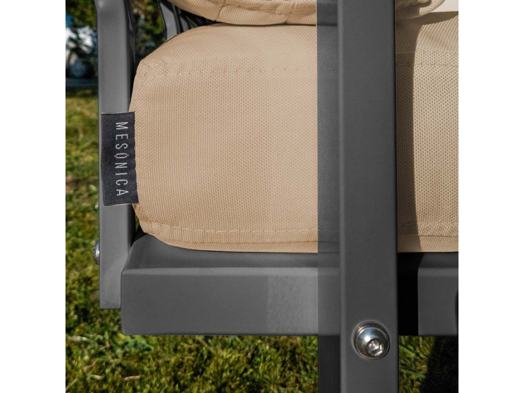 Zažijte nepřekonatelný komfort díky zahradnímu křeslu MESONICA Soledo z prémiového materiálu. Křeslo ve světle hnědé barvě se pyšní pohodlným, vodoodpudivým sedákem, který si zachovává stálobarevnost. V kombinaci s kovovou, lakovanou podnoží odolnou proti korozi působí moderním a svěžím dojmem. Další výhodou čalouněného křesla je, že se může pochlubit dlouhou životností, dá se snadno čistit, je ohnivzdorné a je dodáváno se dvěma dekorativními polštáři. Zkombinujte křeslo i s dalšími produkty řady Soledo, která je dostupná s bílou nebo antracitovou podnoží a nabízí výběr čalounění z široké palety barev.