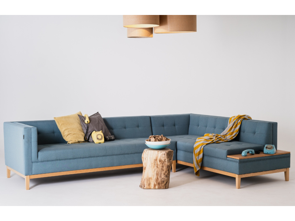 Stylová rohová pohovka Tomm zútulní každý obývací pokoj. Jemná inspirace retro stylem v moderním provedení dodává pohovce Tomm na působivosti, měkký sedák a příjemná potahová látka je pak zárukou maximálního pohodlí. Příjemným bonusem je praktická odkládací plocha z bukového dřeva, na který pohodlně odložíte váš ovladač, odpolední kávu či oblíbenou knížku. Oživte svůj soukromý nebo veřejný interiér s pohovkou Tomm a užívejte si chvíle odpočinku a relaxace s celou vaší rodinou.