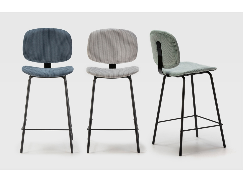 Světle modrá varianta barové židle Arus přináší do interiéru jemný akcent barvy v kombinaci s pohodlím a elegantním vzhledem. Měkká manšestrová látka s výraznou strukturou podtrhuje tvarované linie sedáku a opěrky, zatímco černě lakovaný kov dodává kontrast i moderní výraz. Výborně zapadne do designových kuchyní, kreativních studií i coworkingových prostor. Arus je k dispozici v pěti barevných provedeních, a to ve verzi barové i jídelní.