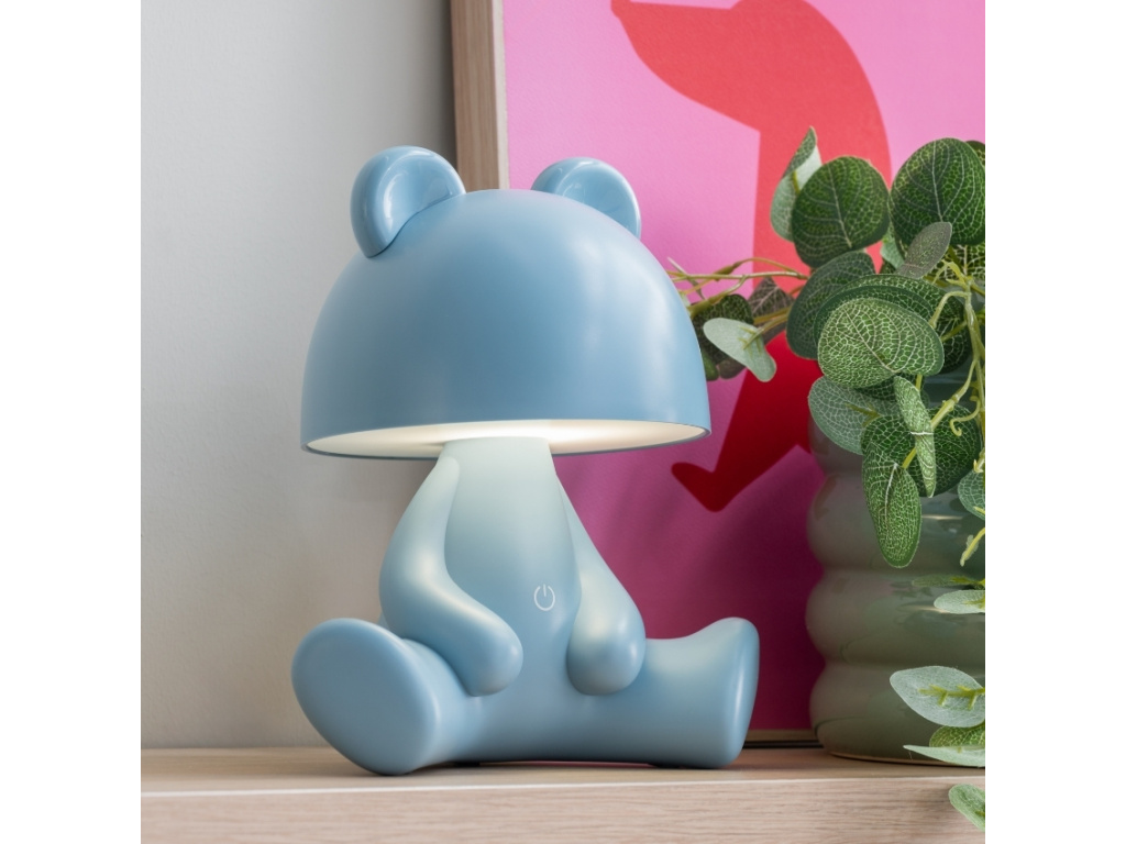 Světle modrá plastová dětská LED lampa Teddy 27 cm