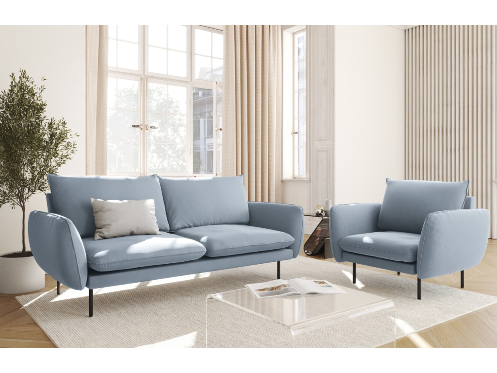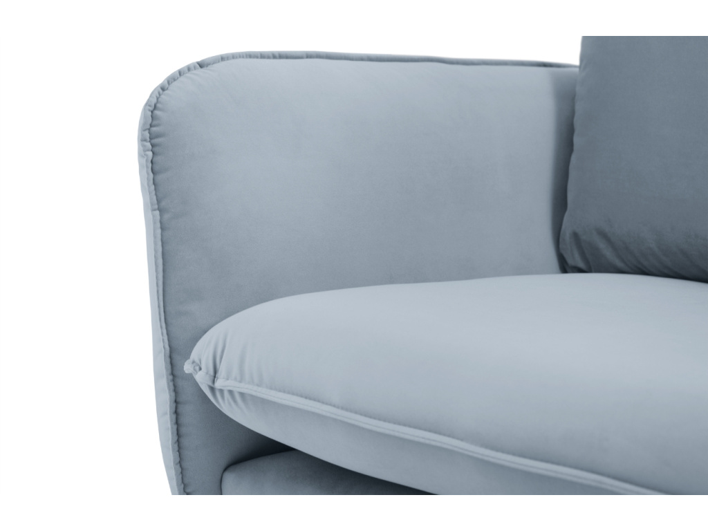 Pohovka Vienna od Cosmopolitan Design je poctou nadčasové eleganci, smyslu pro detail a dokonale vyváženým proporcím. Jemně tvarované opěrky, měkké polštáře a ladná silueta jí propůjčují lehkost, která zaujme na první pohled. Kontrastní černě lakovaná kovová podnož dodává celku vizuální vzdušnost a současně zajišťuje stabilitu. Luxusní sametový potah je nejen krásný na pohled, ale i příjemný na dotek – hladký, hebký a přirozeně elegantní. Na výběr je široká paleta pečlivě vybraných odstínů, které se snadno sladí s jemně minimalistickým interiérem i s odvážnějšími koncepty. Vienna vždy zapadne s lehkostí a zároveň dodá prostoru výraz. A protože každý domov má jiné potřeby, kolekce Vienna je k dispozici v několika velikostech – od kompaktních modelů ideálních do menších bytů až po velkorysé pohovky, na které se vejde celá rodina i s chlupatým parťákem.