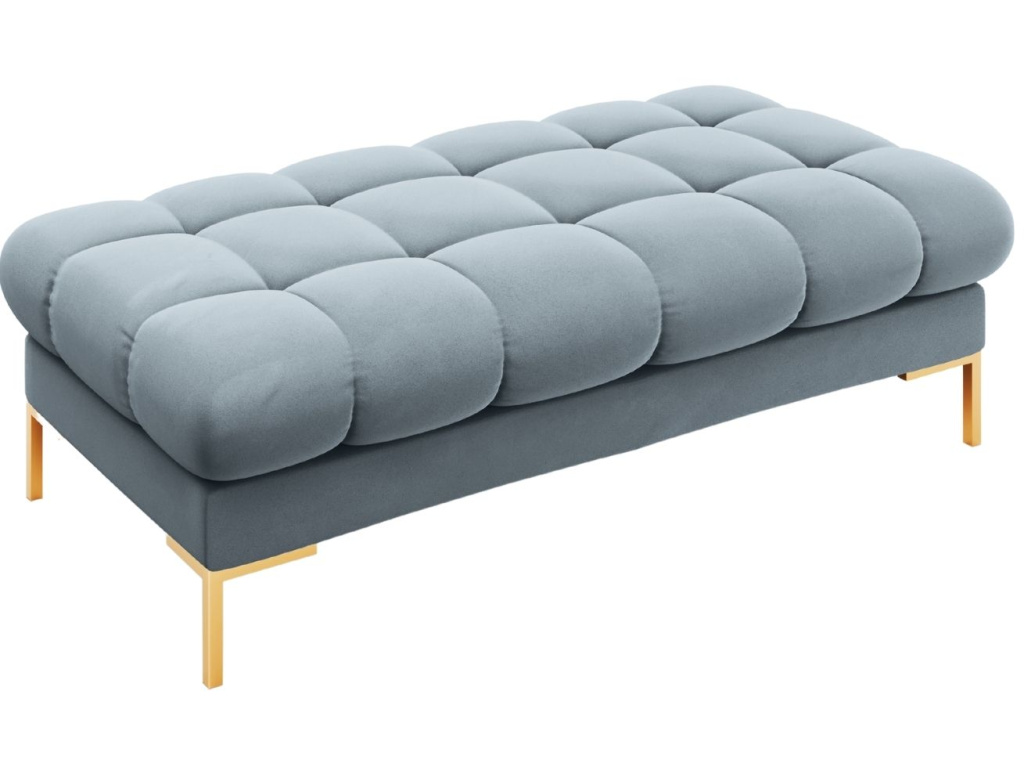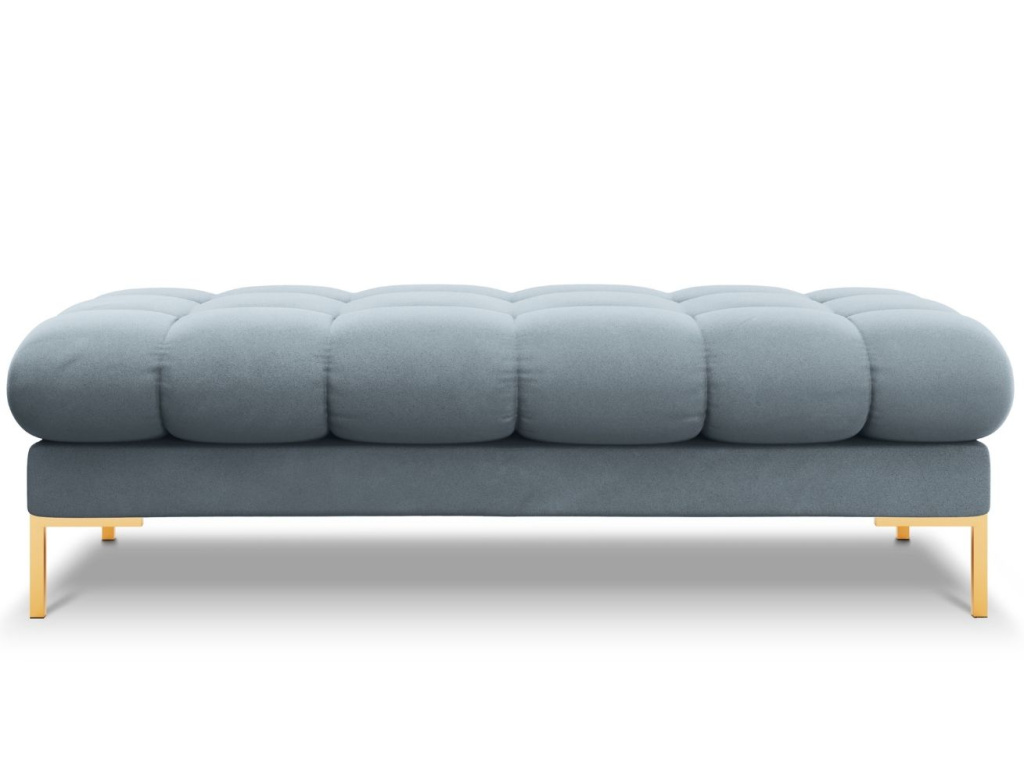 Elegantní lavice Micadoni Mamaia zaujme na první pohled svým nadýchaným vzhledem. Velmi příjemné sametové čalounění a zlatá podnož vytváří kontrast, který interiéru dodá elegantní vzhled a nádech luxusu. Díky zajímavému prošívání vzniká jemný design, který do vašeho domova vnese lehkost a styl. Nechte se obklopit komfortem ve společnosti produktů Mamaia.