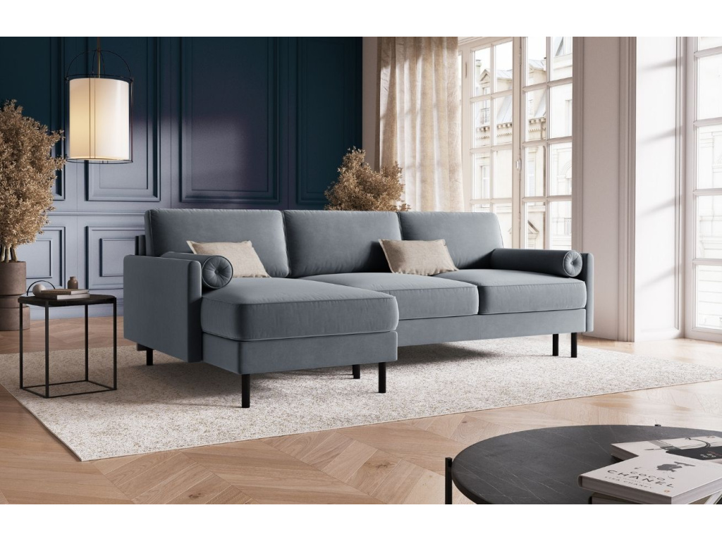 Rohovou pohovku Scott kdykoliv snadno proměníte v lůžko pro vaši nečekanou návštěvu. Pohovka se pyšní jednoduchým elegantním designem, který je umocněn vyšší štíhlou podnoží. Kvalitní sametové čalounění je odolné vůči vznícení a splňuje cigaretový test. Látka s jemným leskem, je navíc je dostupná v široké škále barev, takže si snadno zvolíte tu, která se do vašeho obývacího pokoje bude nejlépe hodit. Dopřejte vašemu obývacímu pokoji tento stylový kousek a užívejte si v jeho pohodlném náručí rodinné filmové večery i chvilky relaxu s knížkou v ruce!