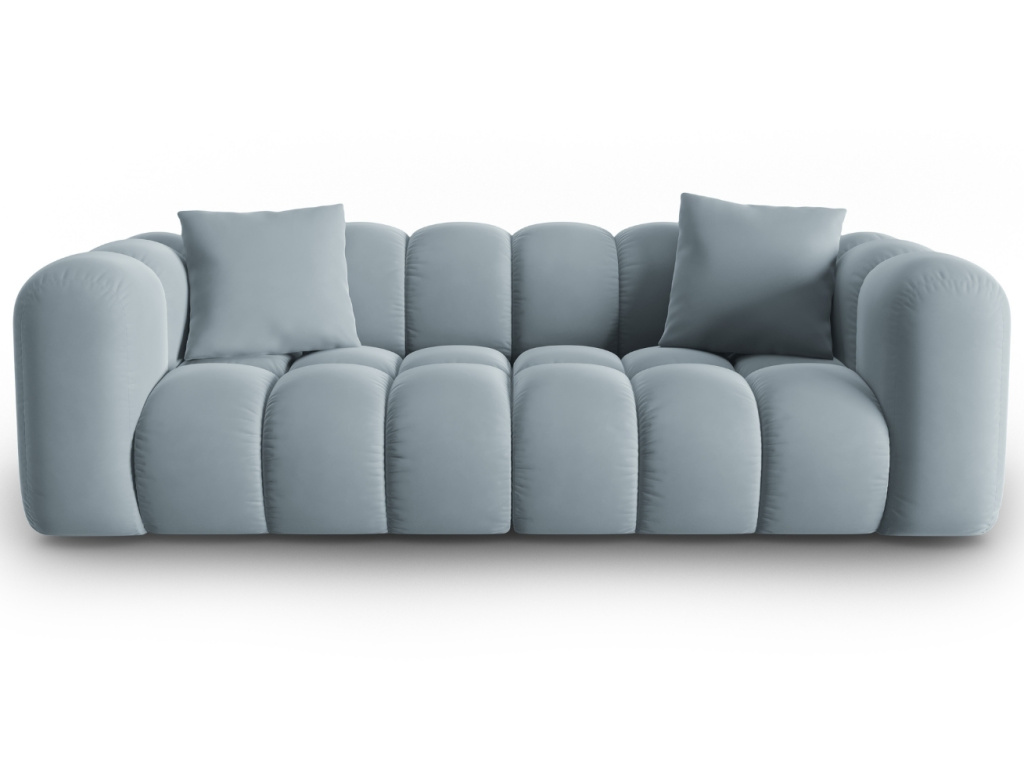 Velkolepá třímístná pohovka Halley od značky Windsor & Co zaujme charakteristickým prošíváním. Bublinkové sedáky, opěradla a područky vybízejí k nespoutané relaxaci. Pohovka je čalouněná sametovou látkou s jemným leskem ve světle modrém provedení, která je měkká a velice příjemná na dotek. Tkanina je velmi odolná proti oděru a absorpci tekutin, čímž zaručí dlouhodobé používání bez známek opotřebení. Látka navíc prošla cigaretovým testem, tudíž je odolná proti doutnání a vznícení. Tento skvostný kus nábytku nejen zaujme na první pohled, ale především zútulní váš interiér ve skandinávském nebo glamour stylu. Příjemným bonusem jsou elegantní polštářky, které doladí pohovku k dokonalosti. Pro sjednocení vašeho sedacího koutu doporučujeme pohovku doplnit také o podnožkou ze stejnojmenné série. Všechny produkty nabízíme v několika barvách. Odpočiňte si a relaxujte ve stylu!